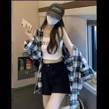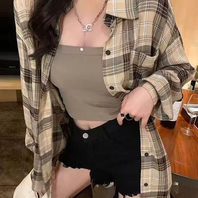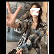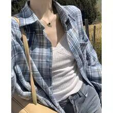 【送料無料◎】 レトロルーズレイジーチェック柄シャツ女性初秋新韓国語版カジュアルシンプル長袖アウター通勤小さなシャツ