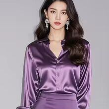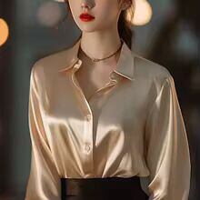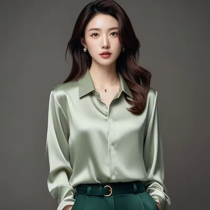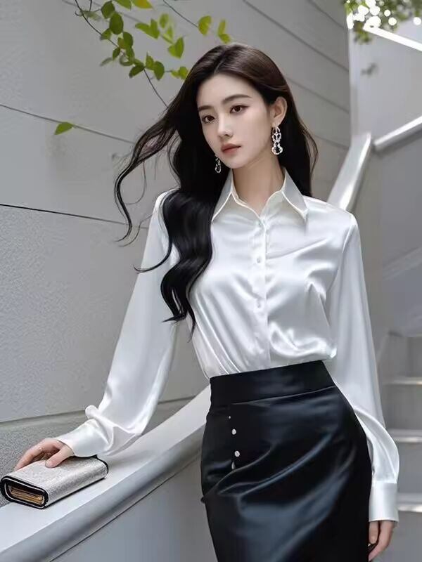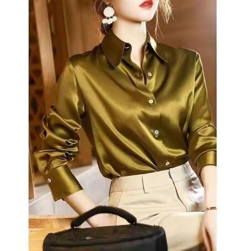 【送料無料◎】 エレガントなサテン長袖シャツ レディース プロフェッショナル通勤スタイル ベースレイヤートップ 韓国風ルーズフィット ボタンディテール