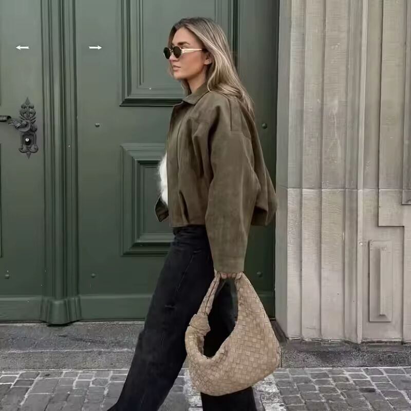 【送料無料◎】 女性のボンバージャケットコートファッションターンダウンカラー長袖ルーズコートヴィンテージ女性アウターシックなトップス