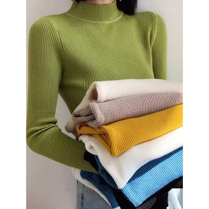 【送料無料◎】 秋冬モックネック女性セーターヴィンテージベーシックソリッドニットトップスカジュアルスリムプルオーバー韓国セーターシンプルシックジャンパー