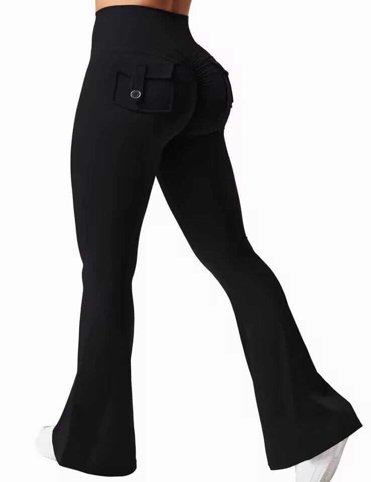 【送料無料◎】 最新の女性ワイドレッグ高ストレッチヨガレギンス裸感圧縮フィットネス作業着ポケット付きヨガパンツ