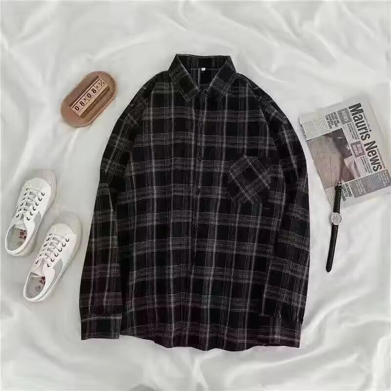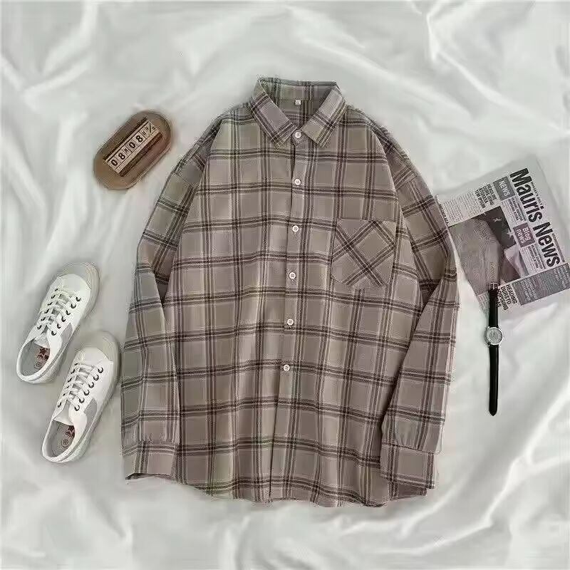 【送料無料◎】 秋/冬レトロ長袖チェックシャツ韓国ファッション万能秋チェックシャツゆったり万能トップス