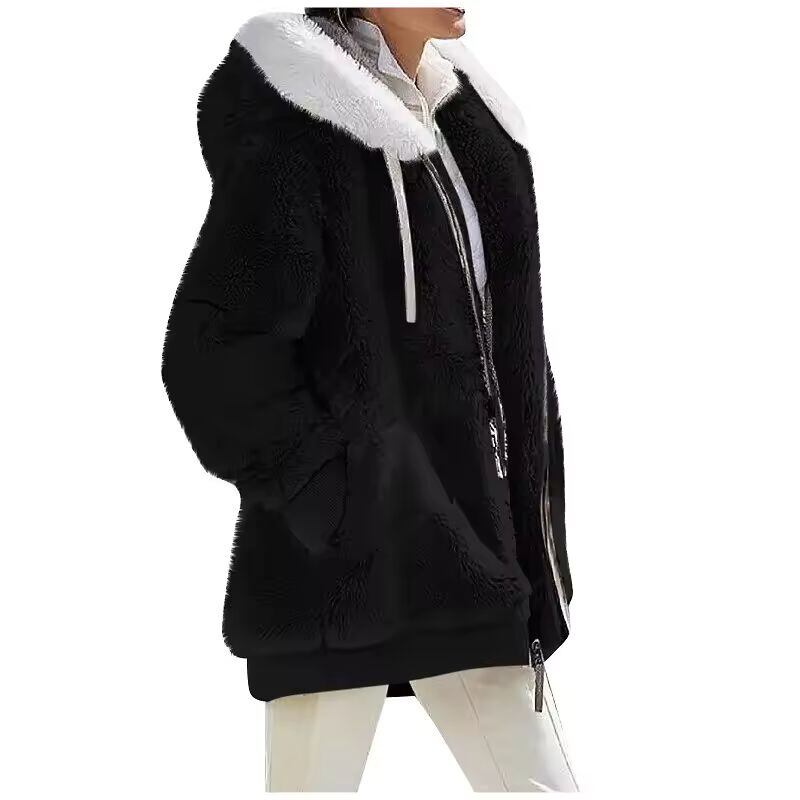 【送料無料◎】 秋冬ファッション女性のコート新カジュアルフード付きジッパー女性服カシミヤ女性フリースジャケット無地レディースコート