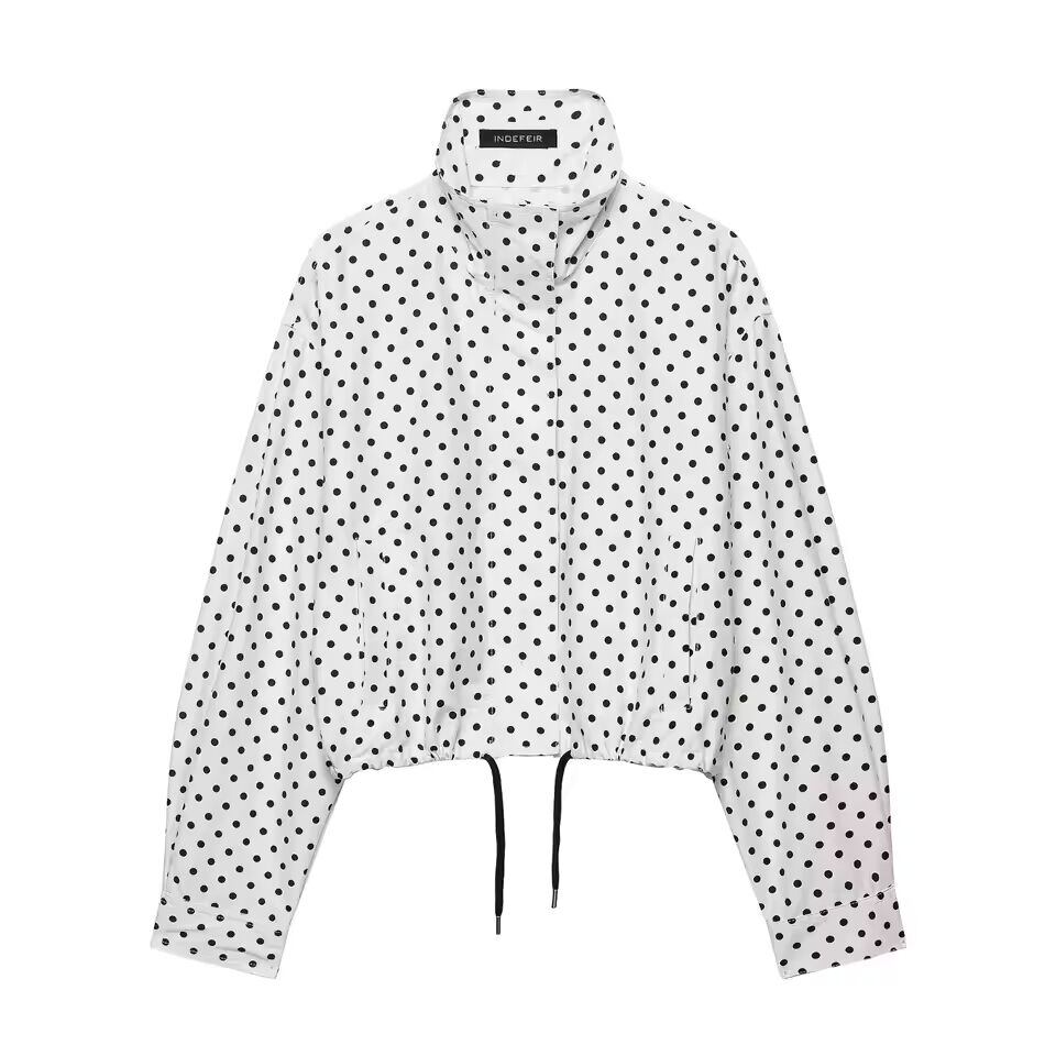 【送料無料◎】 HH 女性秋長袖タートルネックジッパーポケット付き巾着カジュアルコート女性ファッション水玉プリントジャケット