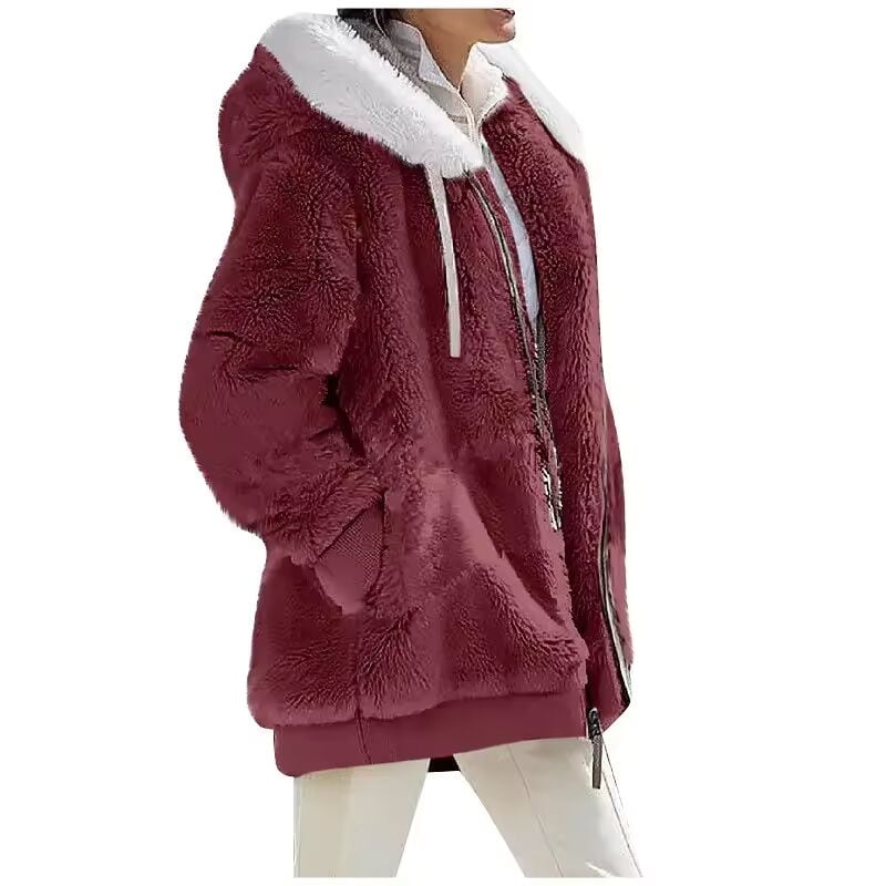 【送料無料◎】 秋冬ファッション女性のコート新カジュアルフード付きジッパー女性服カシミヤ女性フリースジャケット無地レディースコート