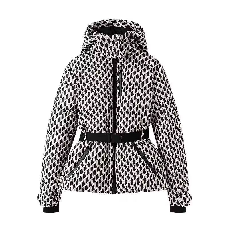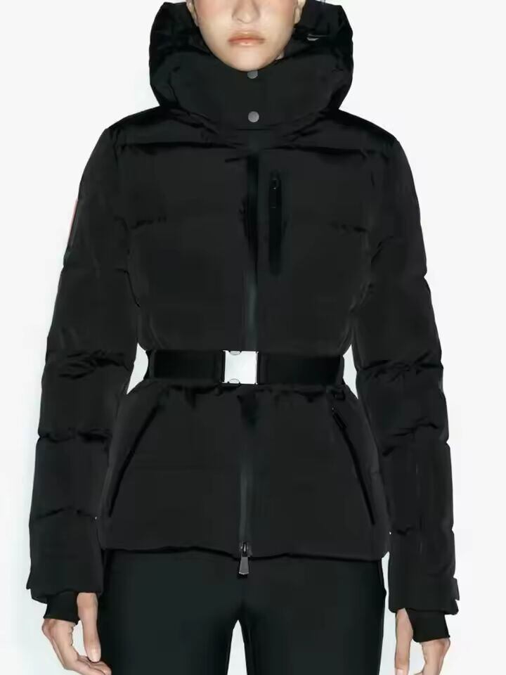【送料無料◎】 女性の冬のフード付きハイウエストパッド入りスポーツパーカーコートベルト付き女性のエレガントな厚く暖かいポケット防風スキージャケット