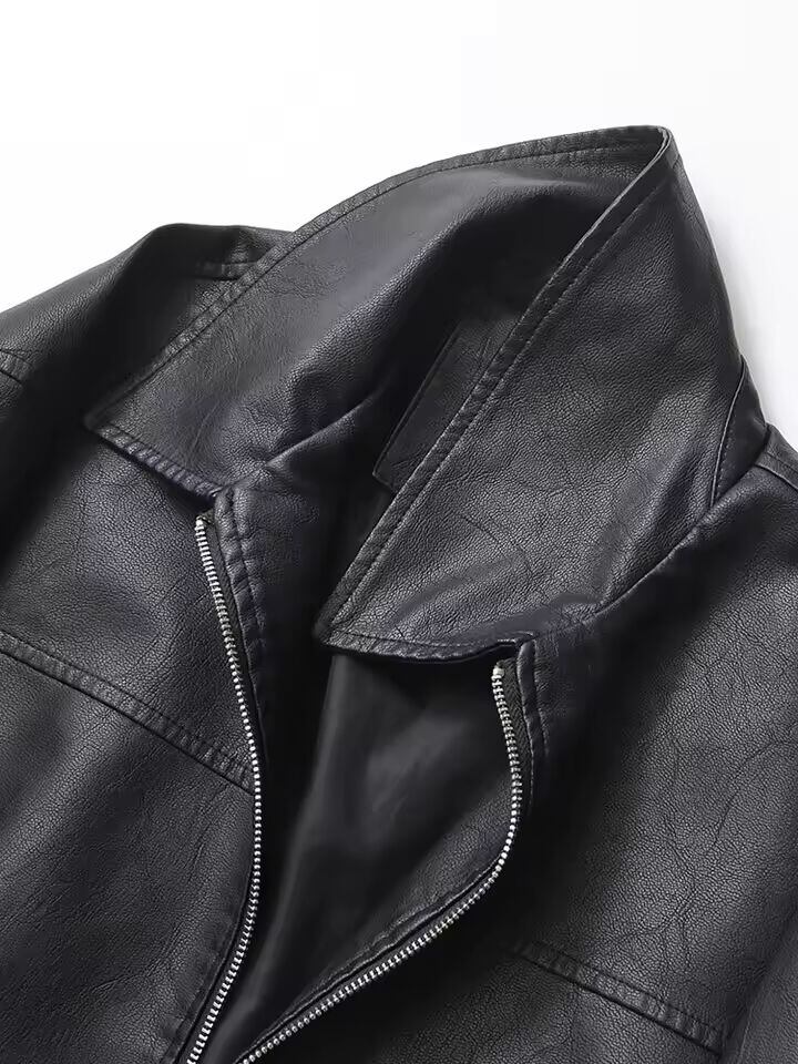 【送料無料◎】 Ailegogo ストリート女性レトロルーズショート Pu フェイクレザージャケット春秋の女性のジッパーコートヴィンテージモトバイカー生き抜く