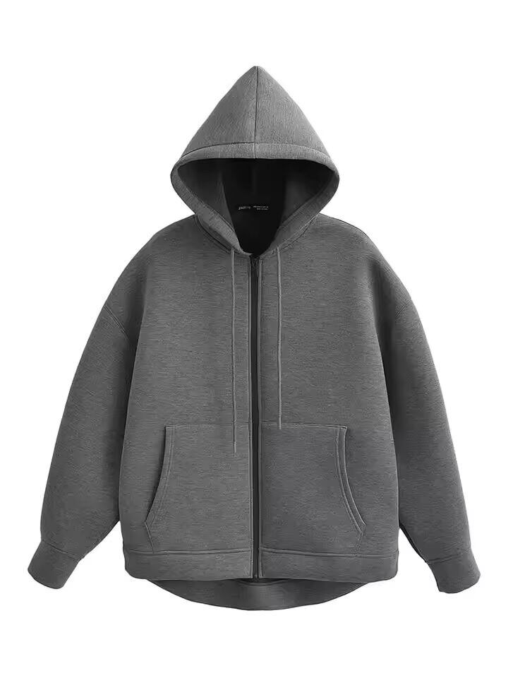 【送料無料◎】 HH 秋の女性グレージャケットフード付き長袖ビッグポケットジッパージャケットコート女性ルーズカジュアルアウターコートトップス