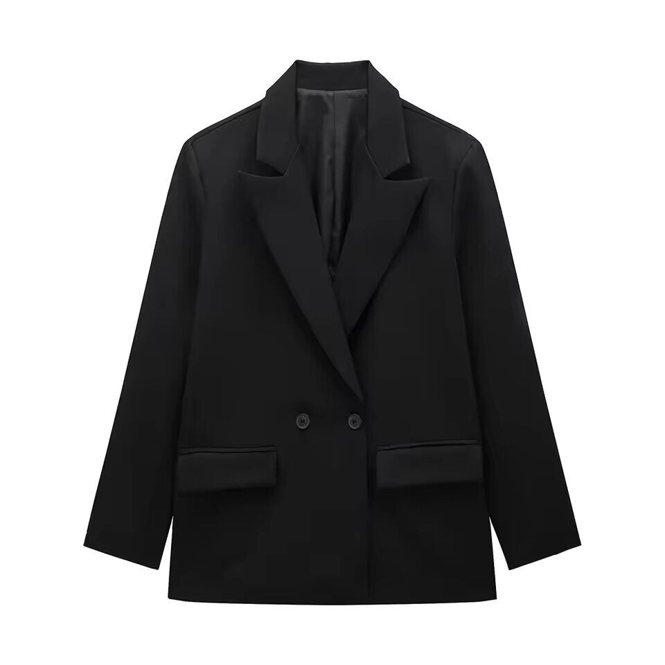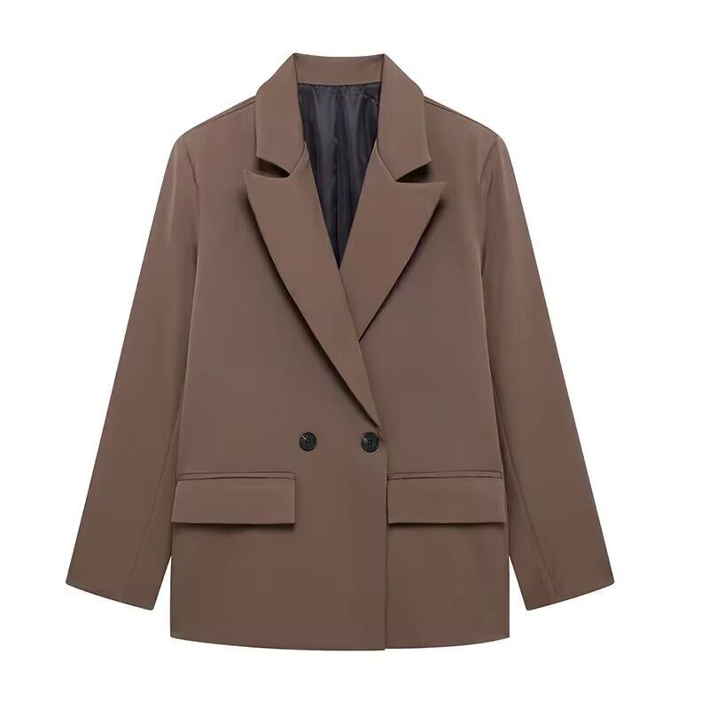 【送料無料◎】 Willshela 女性ファッションポケット付き固体ダブルブレストブレザーヴィンテージ長袖ノッチネック女性オフィスレディ衣装