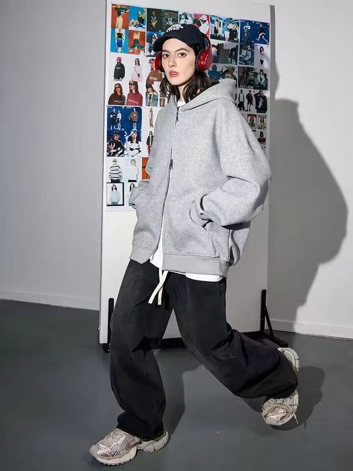 【送料無料◎】 女性のファッション暖かいフード付きジャケット秋秋冬グレー長袖ポケットダブルジッパージャケット通勤カジュアル女性ジャケット