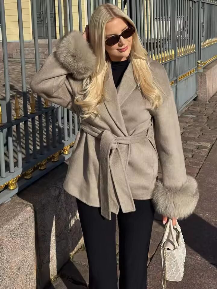 【送料無料◎】 トッシーフォックスファーウールオーバーコート レディース ショートコート オフィスレディ エレガント ダブルフェイス ウールコート 2025 新作 カーディガン ジャケット ルーズ ウール