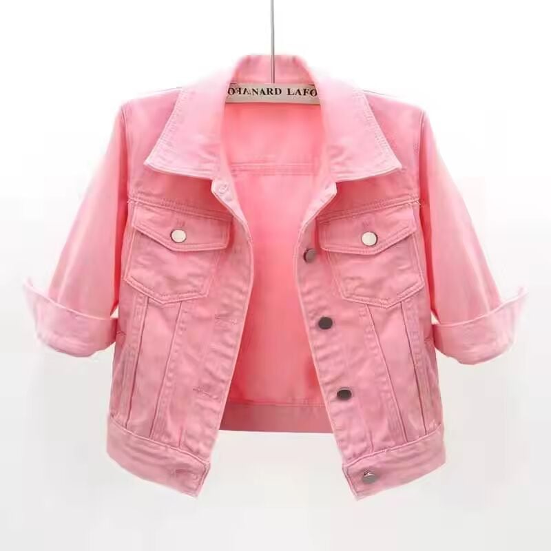 【送料無料◎】 女性デニムジャケット春秋ショートコートピンクジーンズジャケットカジュアルトップス紫黄紫青ルーズトップス女性の上着