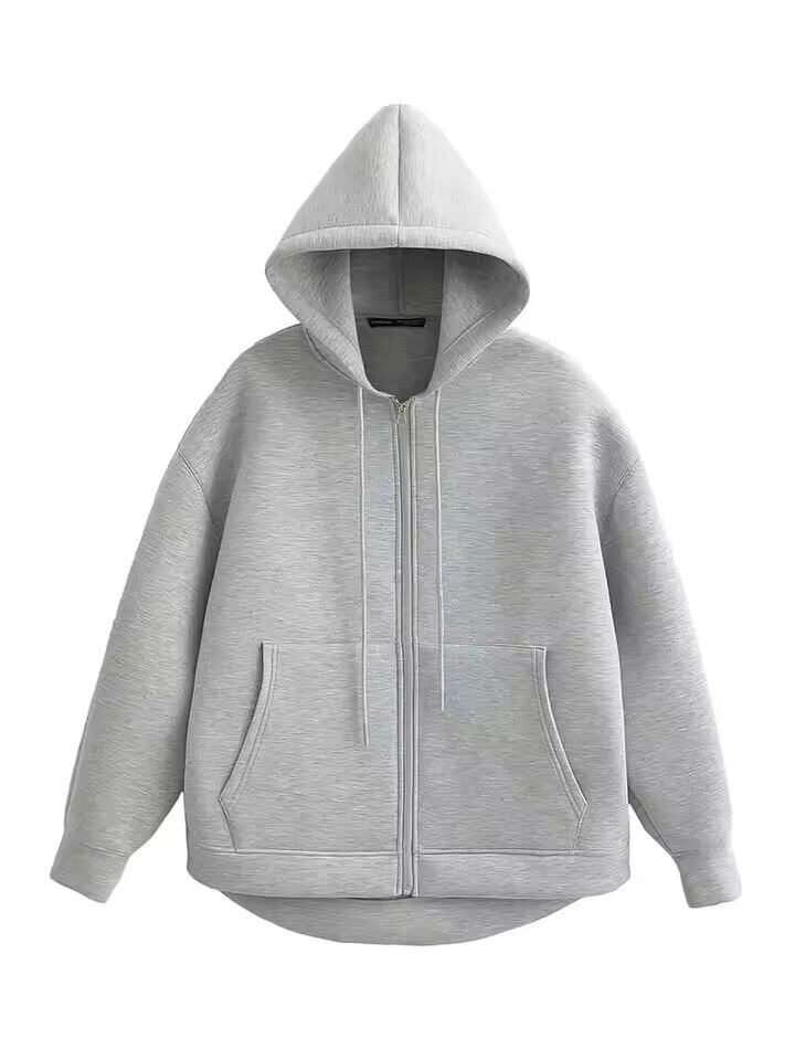 【送料無料◎】 HH 秋の女性グレージャケットフード付き長袖ビッグポケットジッパージャケットコート女性ルーズカジュアルアウターコートトップス