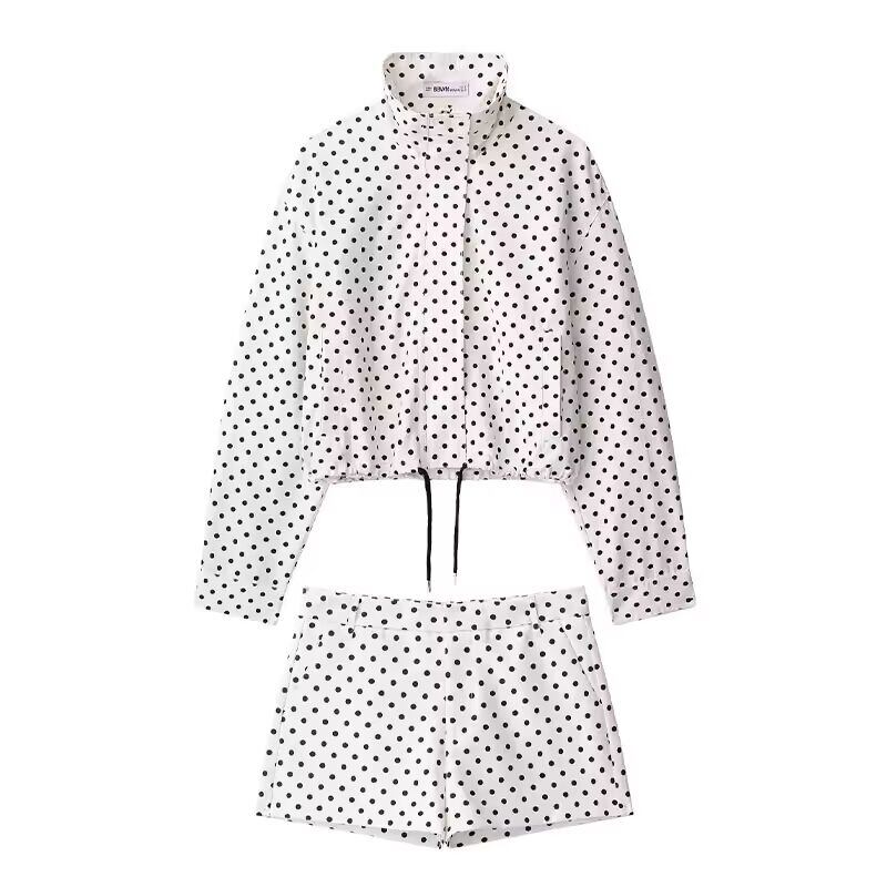【送料無料◎】 HH ファッション レディース 水玉模様 ショートコート 秋 長袖 タートルネック ジッパー付き ポケット付き ドローストリング カジュアルジャケット