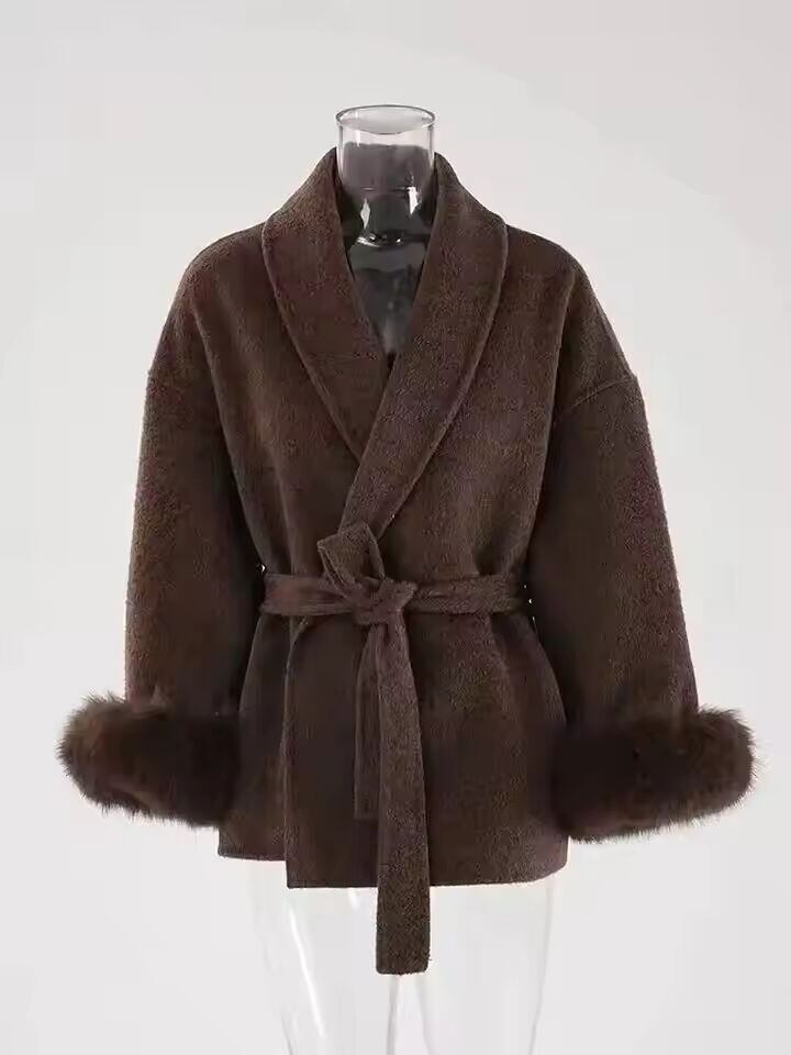 【送料無料◎】 UCXQ エレガントな OL オフィスレディオーバーコート毛皮パッチワーク長袖ウールコート美しい婦人服ジャケット秋 2025 春