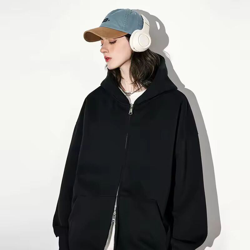 【送料無料◎】 女性のファッション暖かいフード付きジャケット秋秋冬グレー長袖ポケットダブルジッパージャケット通勤カジュアル女性ジャケット