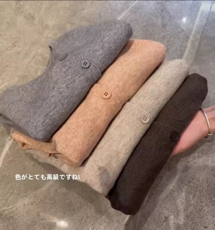 【送料無料◎】 柔らかな肌触りのウールニットオープンカーディガン、ゆったりとしたVネックショート丈アウターウェアセータージャケット、韓国風、2024年春、無地