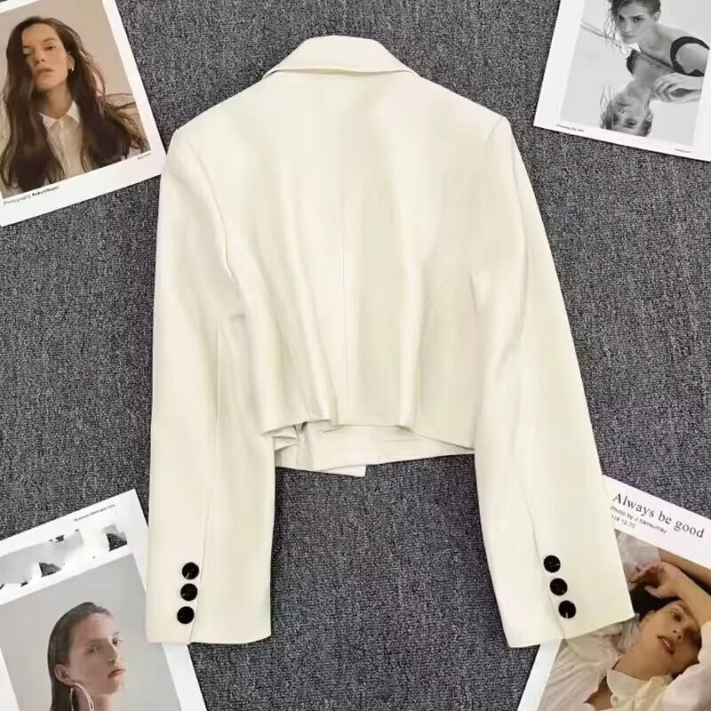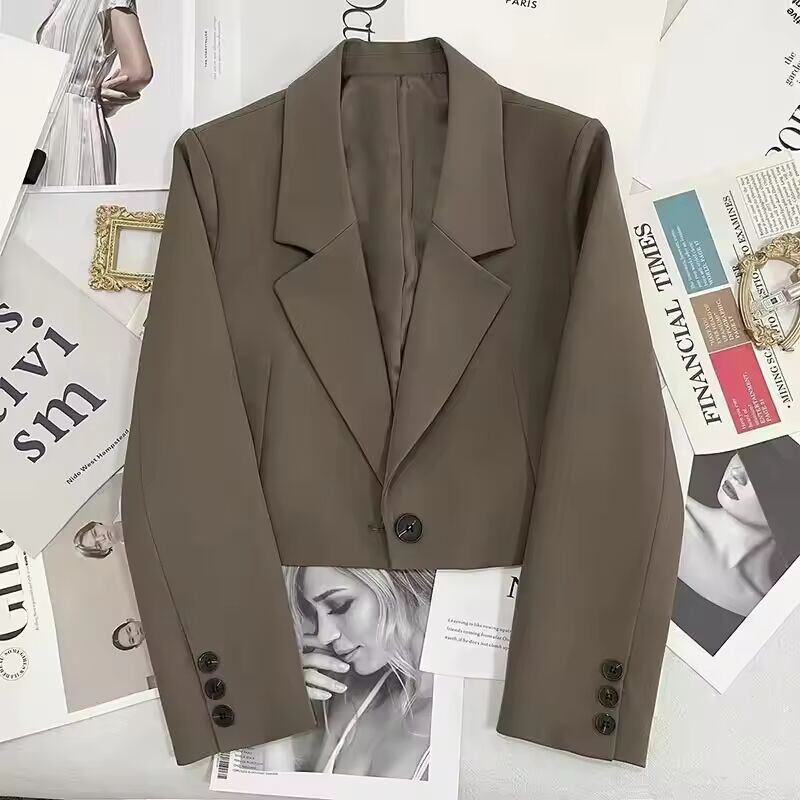 【送料無料◎】 黒クロップドブレザー女性トレンド 2024 新オールマッチノッチ襟クロップジャケット女性韓国シックなシングルボタンスーツコート