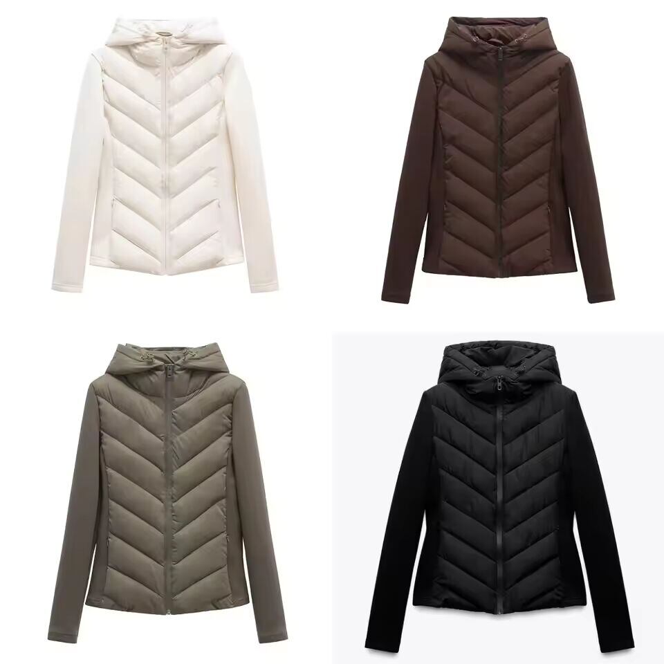 【送料無料◎】 ETJ 2025新作 レディース エレガント ファッション パッチワーク 長袖 スタンドカラー フード付き コットンジャケット スポーツコート 8073227