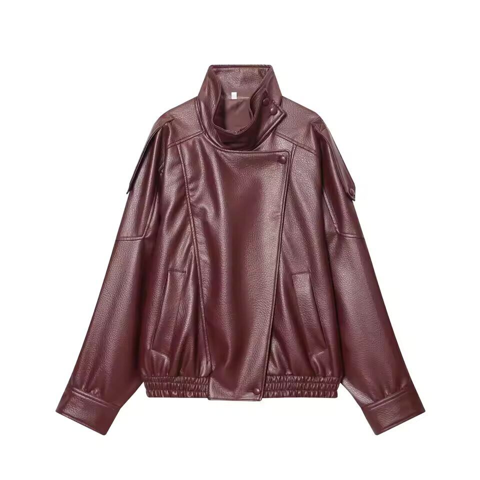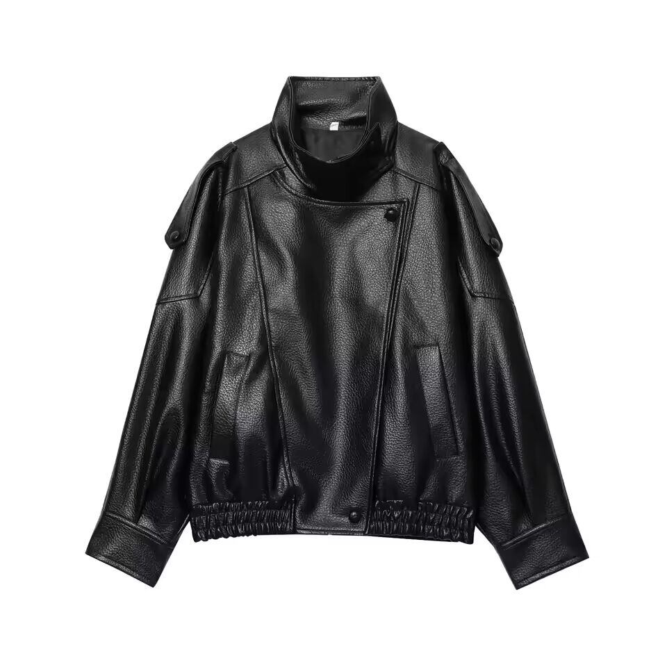 【送料無料◎】 TFMLN 2025 レディース フェイクレザー ルーズジャケット ハイストリート スタンドカラー 長袖コート ファッション カジュアル ジップアップ アウター 秋冬
