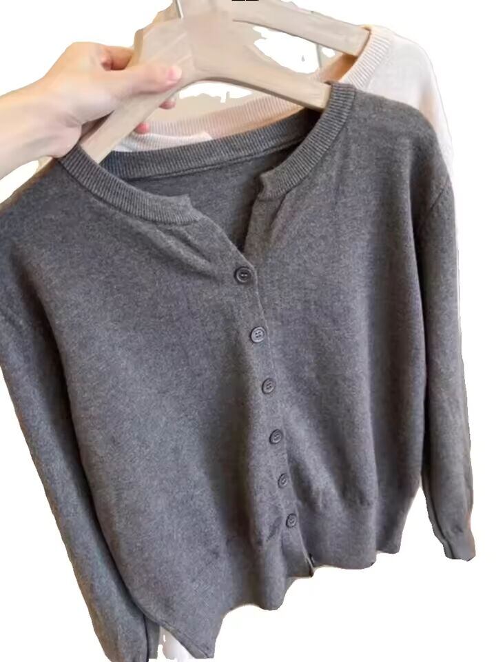 【送料無料◎】 柔らかな肌触りのウールニットオープンカーディガン、ゆったりとしたVネックショート丈アウターウェアセータージャケット、韓国風、2024年春、無地