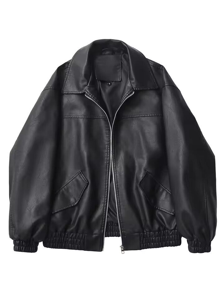【送料無料◎】 Ailegogo ストリート女性レトロルーズショート Pu フェイクレザージャケット春秋の女性のジッパーコートヴィンテージモトバイカー生き抜く