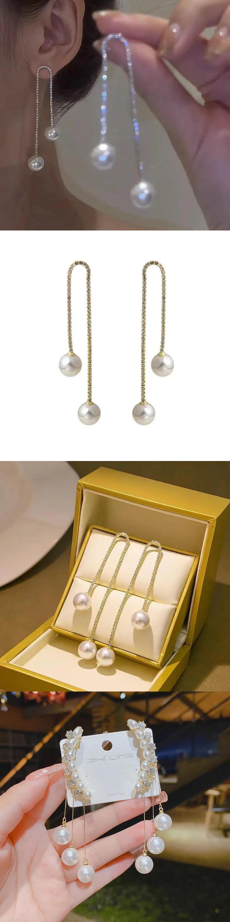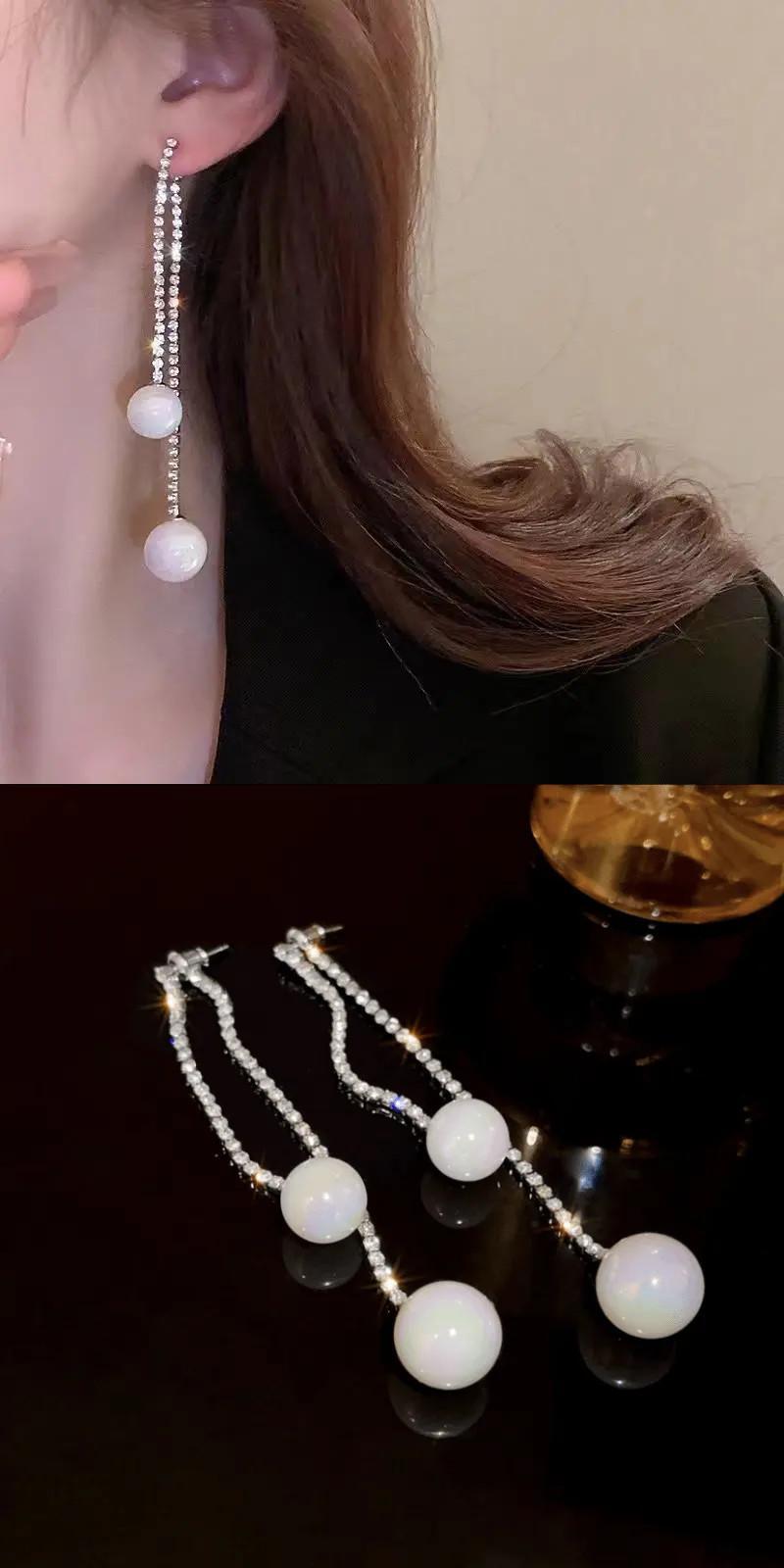 送料無料 Clic 模造パールブラブライヤリング女性ラインストーンロング電話絶妙なイヤリングウェディングジュエリーギフト 真珠 指輪 AE778878842906165808