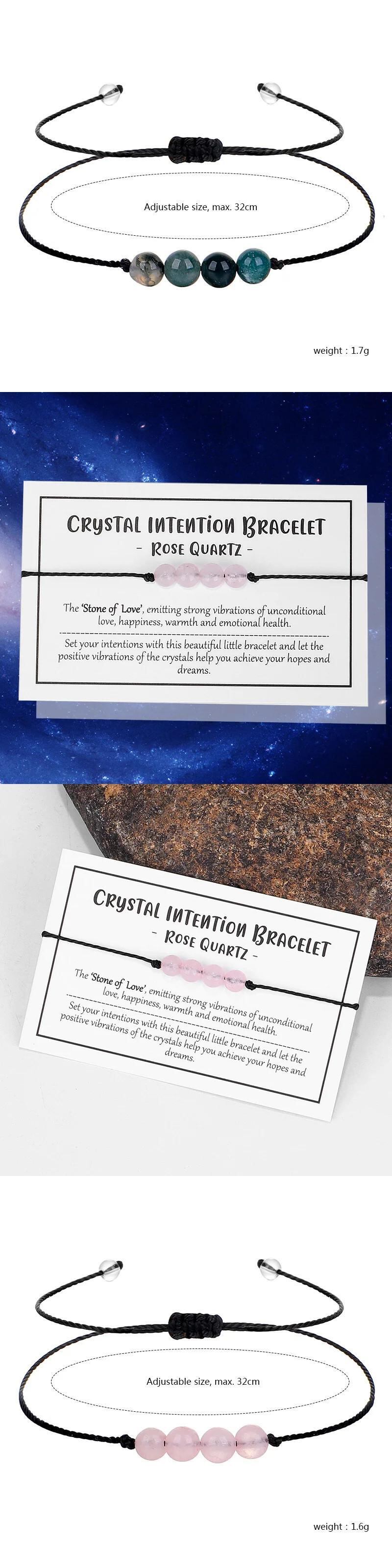 送料無料 減圧天然石ビーズワックスラインブレスレット手作り三つ編みロープクリスタル意図チャームブレスレットレイキジュエリーウィッシュカード ナチュラル AE778878872614265361