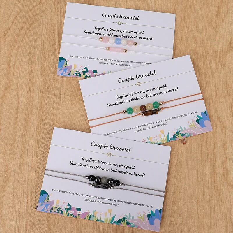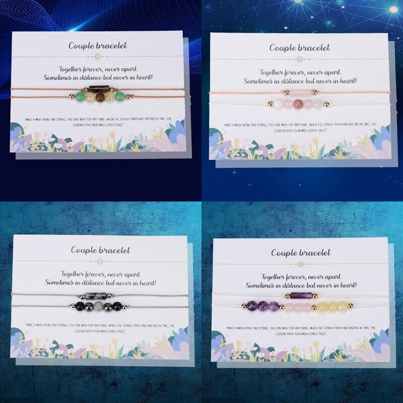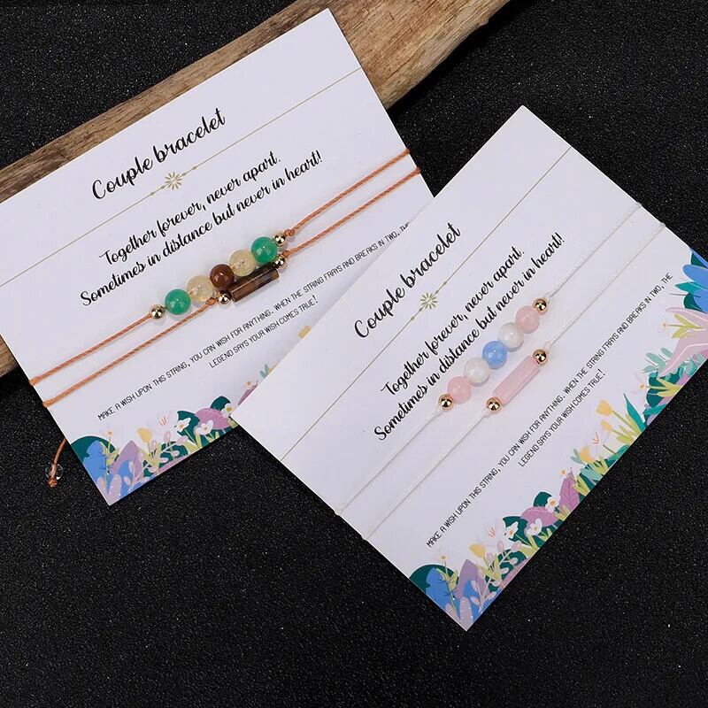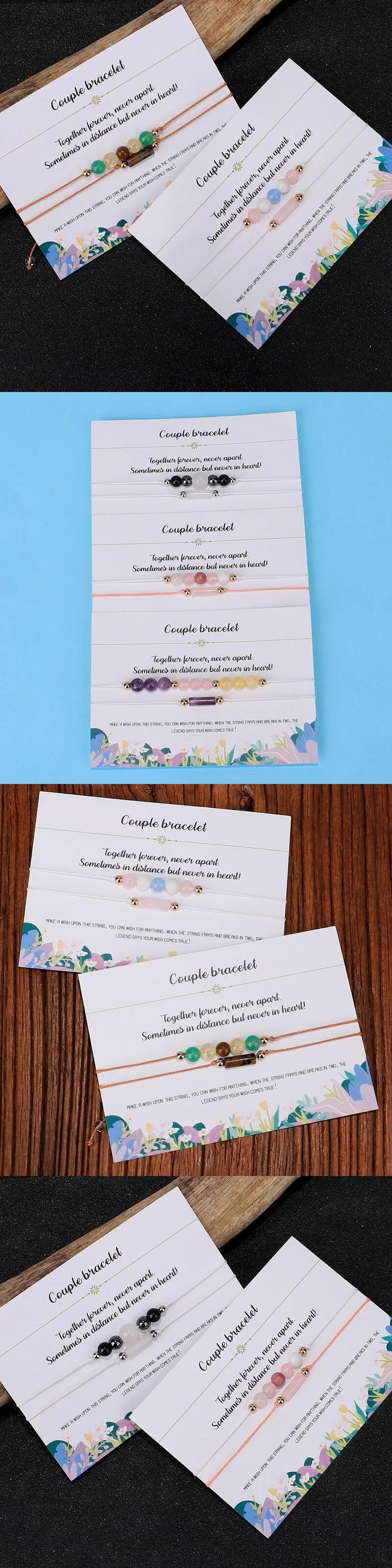 送料無料 天然石ブレスレット女性手作り三つ編みロープジオメトリカップルブレスレットバングルビーチジュエリーセットウィッシュカードビジューギフト ナチュラル AE778878863261643962
