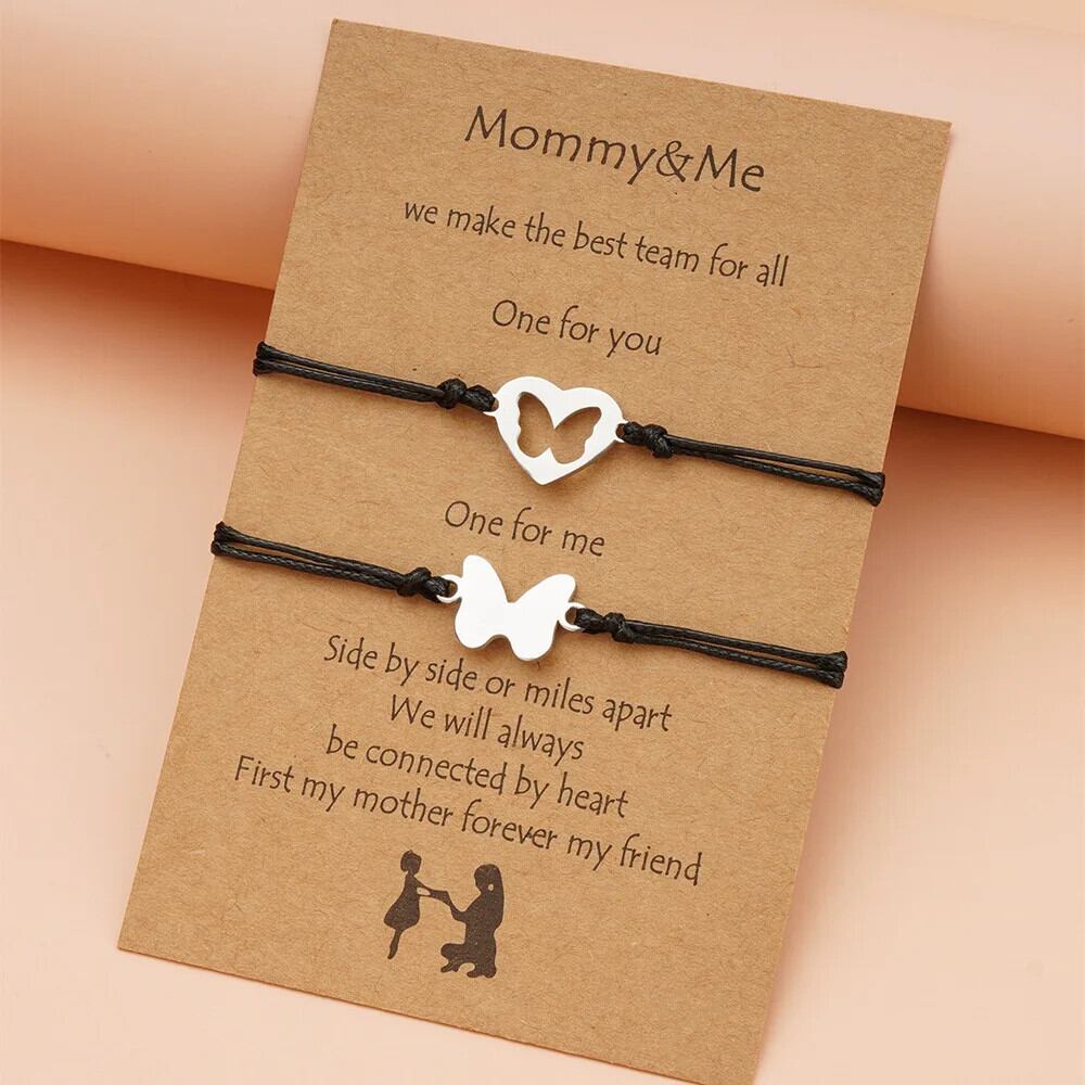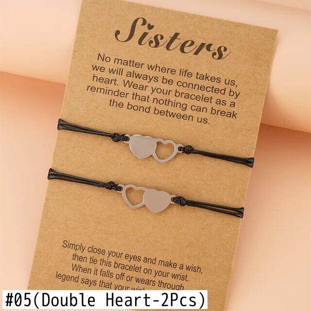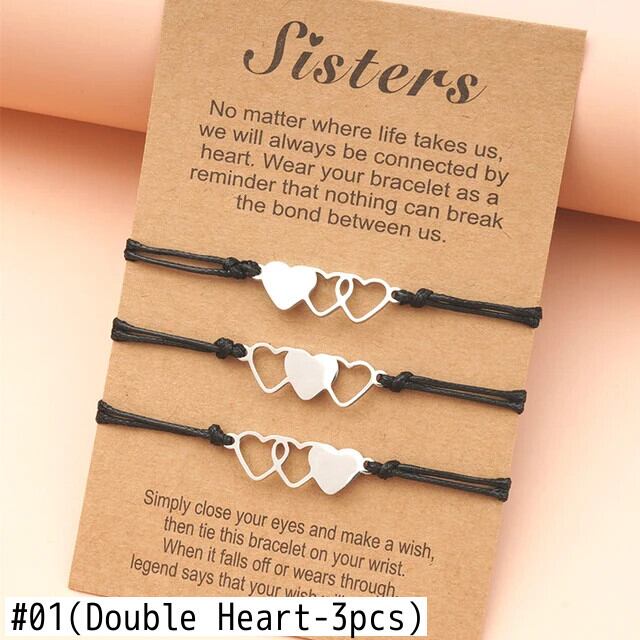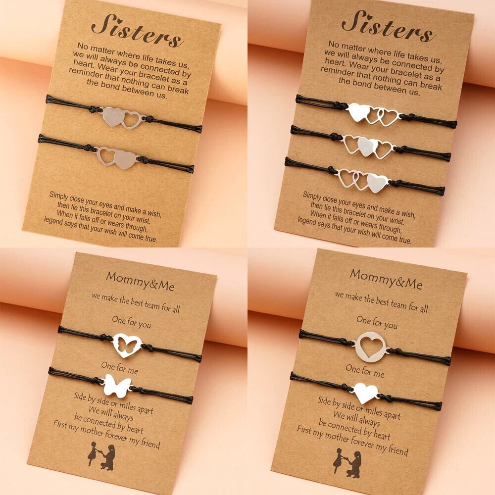 送料無料 Doule ハート蝶姉妹カードブレスレット親友ステンレス鋼手作り誕生日ギフト母の日ジュエリー AE778878824776140041