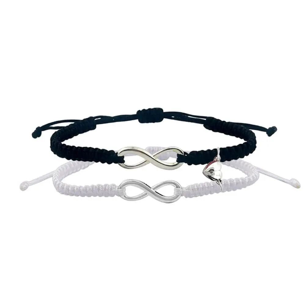 送料無料 2 ピース/セット手作りロープラブハート磁気カップルブレスレット女性男性インフィニティ 8 ナンバーペンダントチャームブレスレット友情ギフト AE778878821441863918