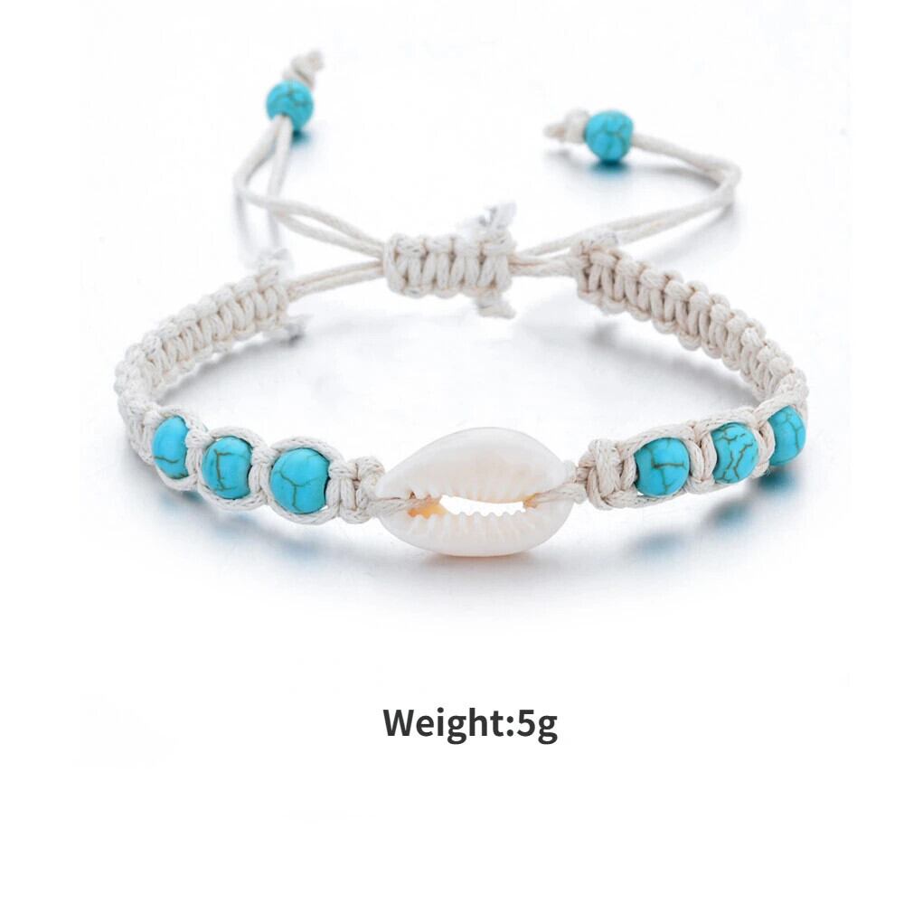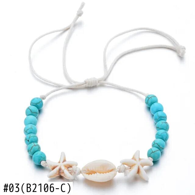 送料無料 手作り天然石ビーズシェルチャームブレスレットユニセックス調節可能なヒトデターコイズビーズ編組ロープブレスレット自由奔放に生きるジュエリー アジャスタブル ナチュラル AE77887888559977320