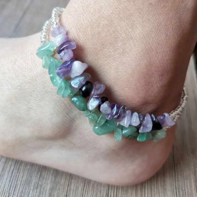 送料無料 自由奔放に生きる手作りストーンビーズアンクレット不規則な天然石ビーズアンクルブレスレット女性夏の海ビーチ足チェーンジュエリー サマー 夏物 ナチュラル AE778878841401977340