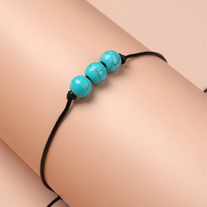 送料無料 ボヘミアチャームブレスレット友情ターコイズストーンブレスレット Diy 手作りビーズストランドバングル女性幸運の願いカードジュエリー AE778878848453387727