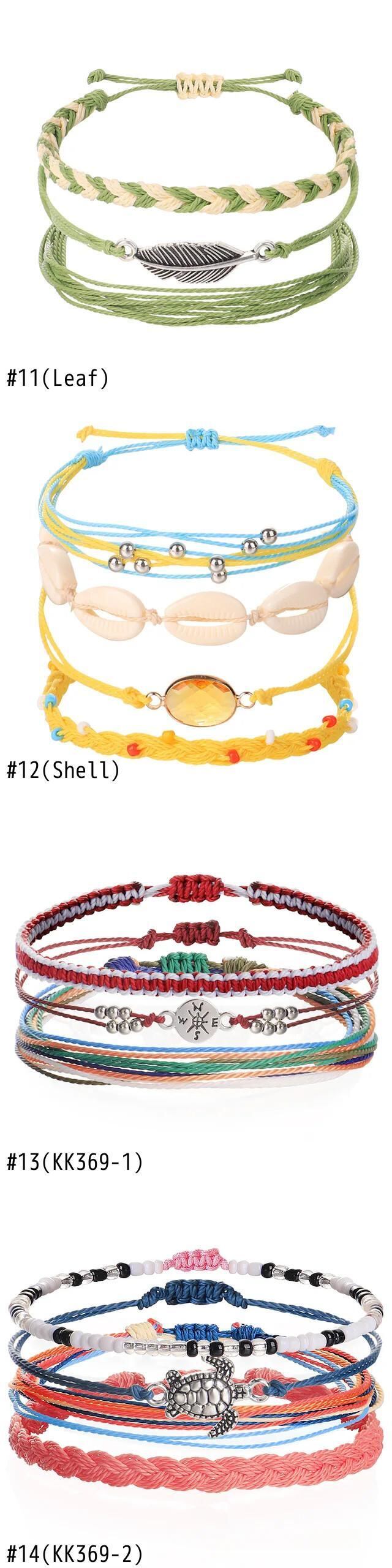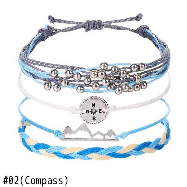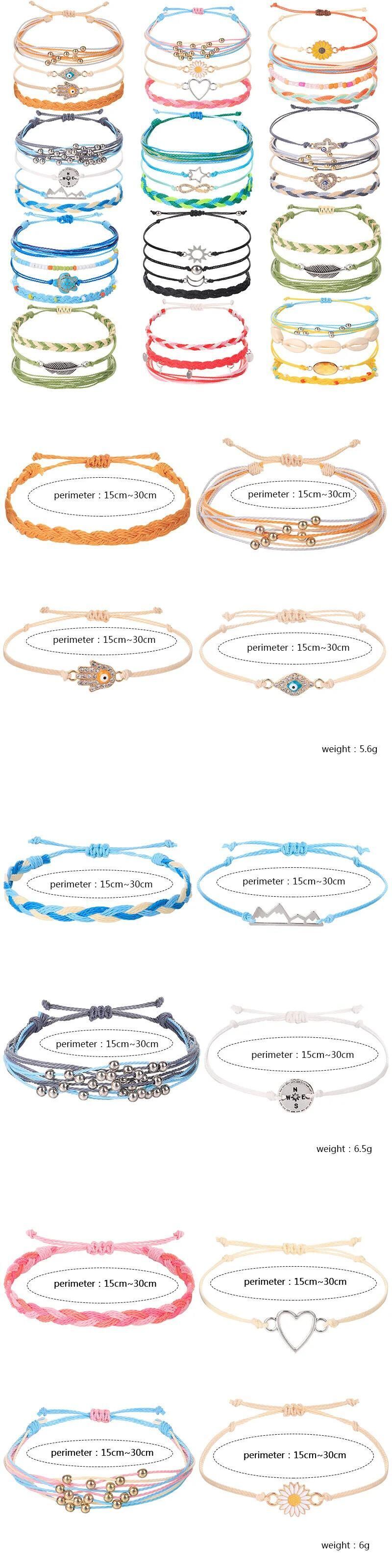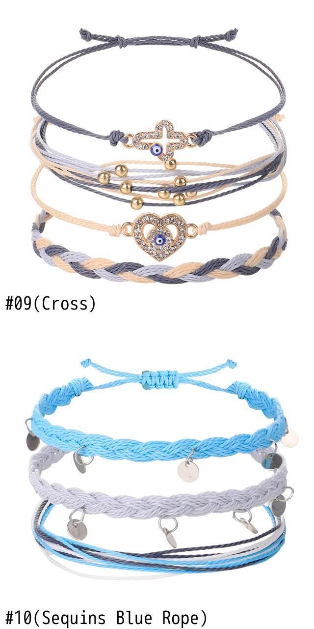 送料無料 4 ピース/セット手作り多層ブレスレットセットチャームアイカメインフィニティ波ビーズ編組ロープブレスレット女性自由奔放に生きるカップルジュエリー マルチレイヤー AE778878888360466490