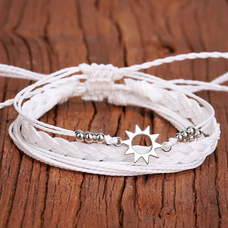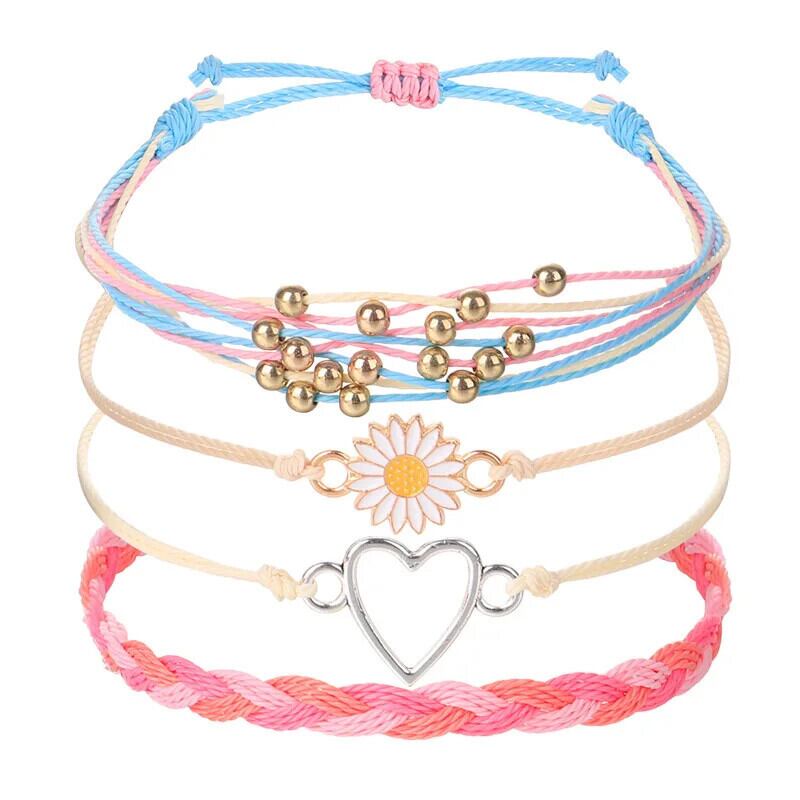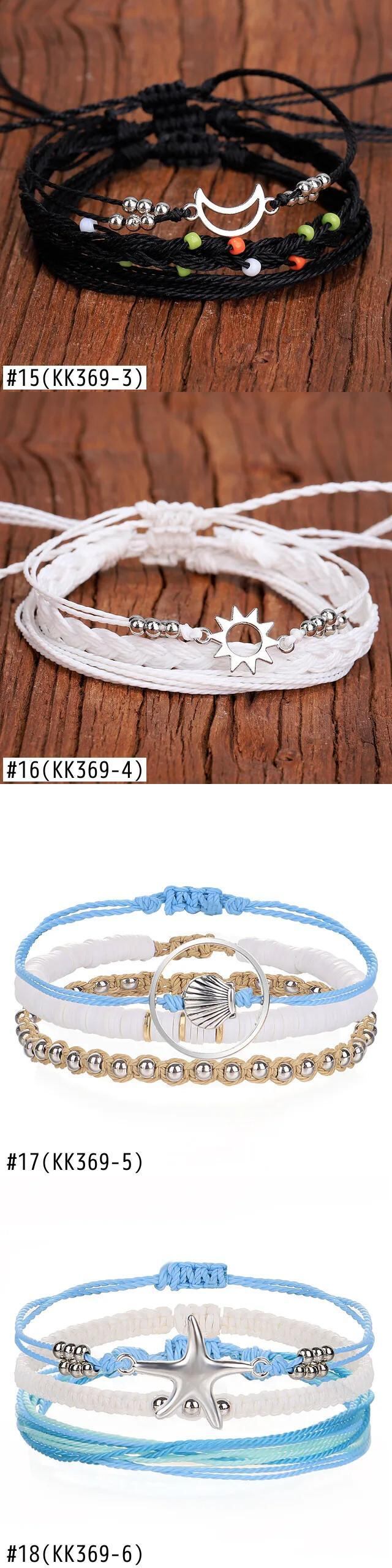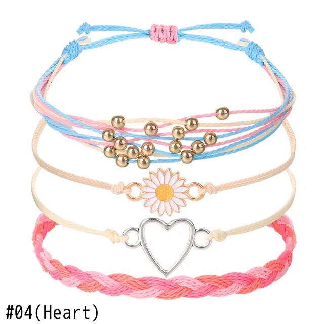 送料無料 4 ピース/セット手作り多層ブレスレットセットチャームアイカメインフィニティ波ビーズ編組ロープブレスレット女性自由奔放に生きるカップルジュエリー マルチレイヤー AE778878888360466490