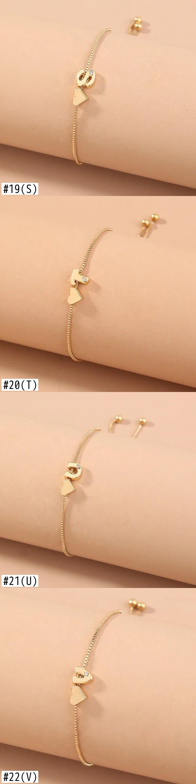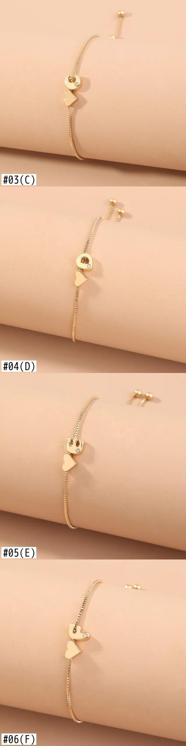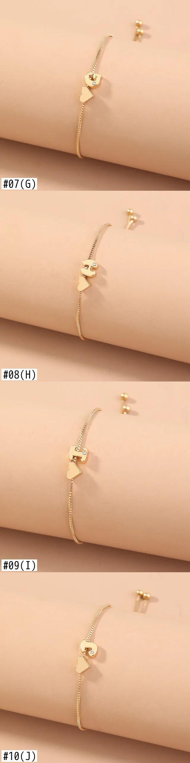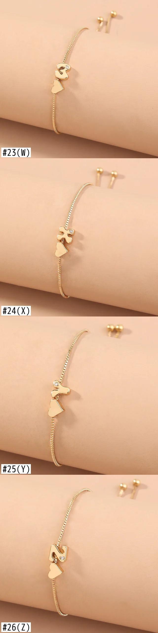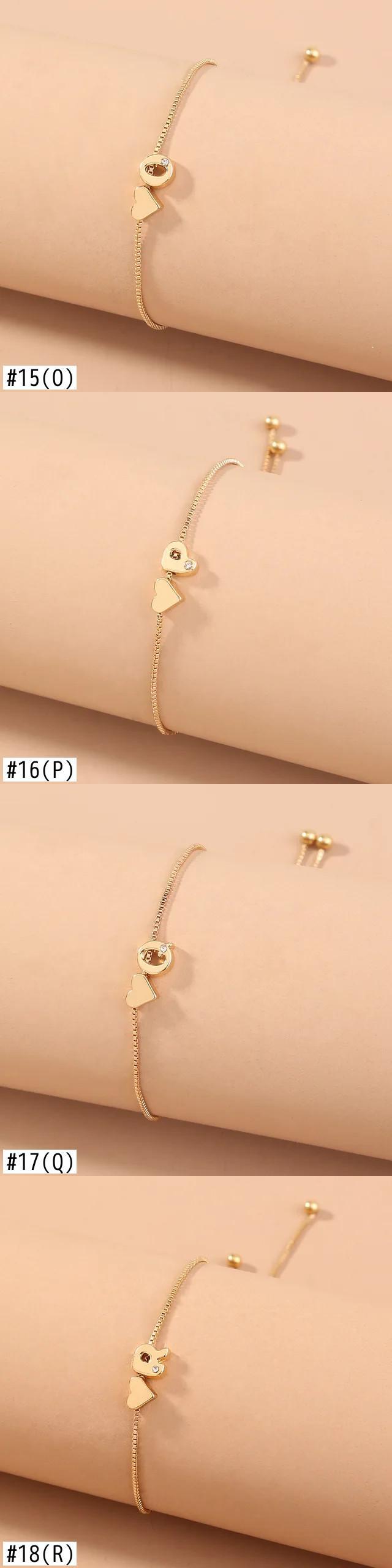 送料無料 ガールズゴールドカラー 26 A-Z 文字名ハートブレスレットバングルイニシャルアルファベットチャームボックスチェーンブレスレット女性ギフト AE778878898610281773