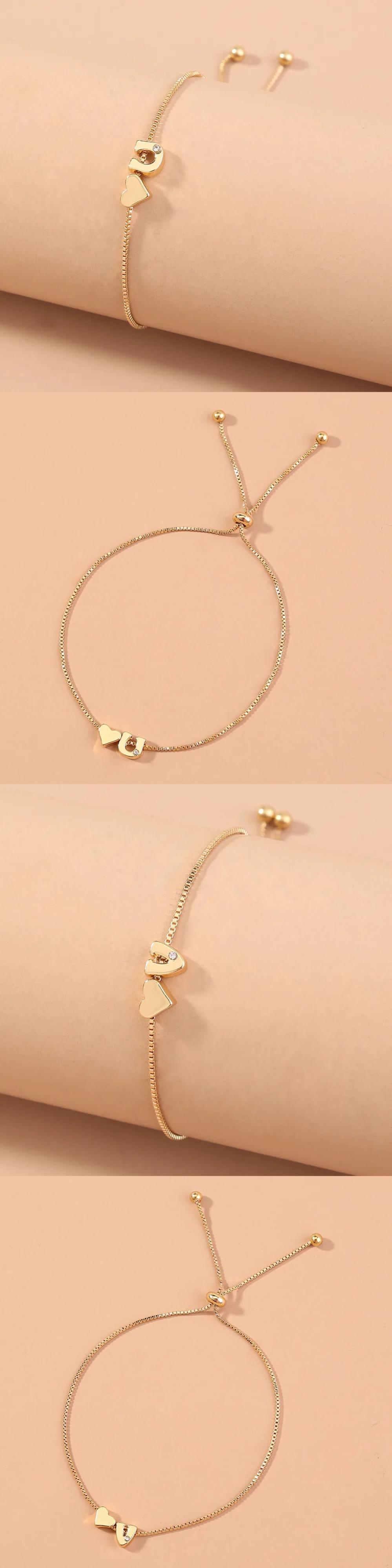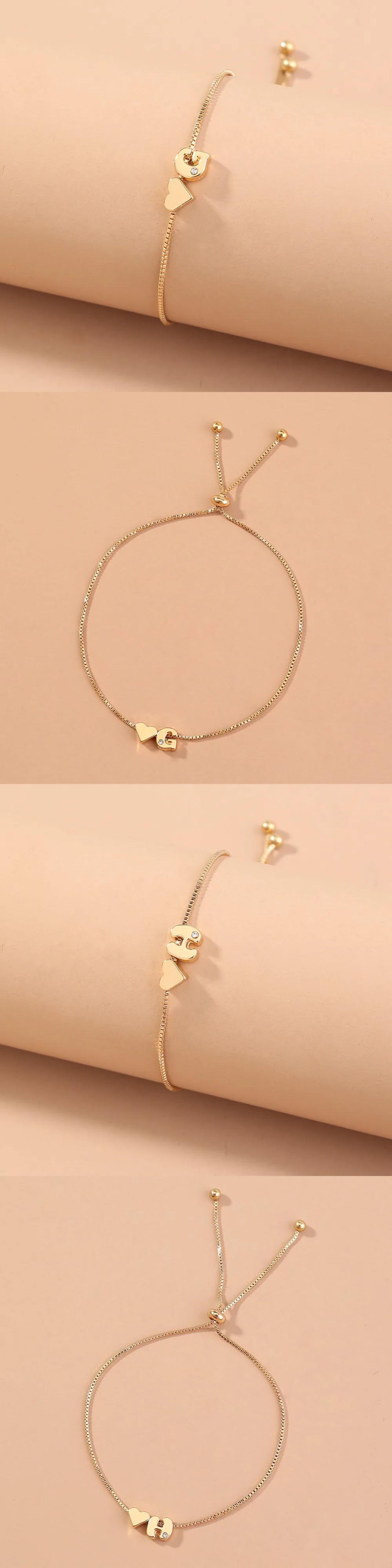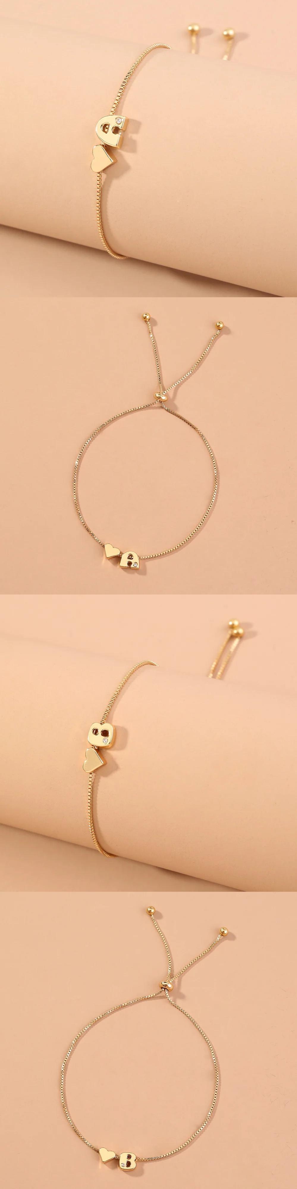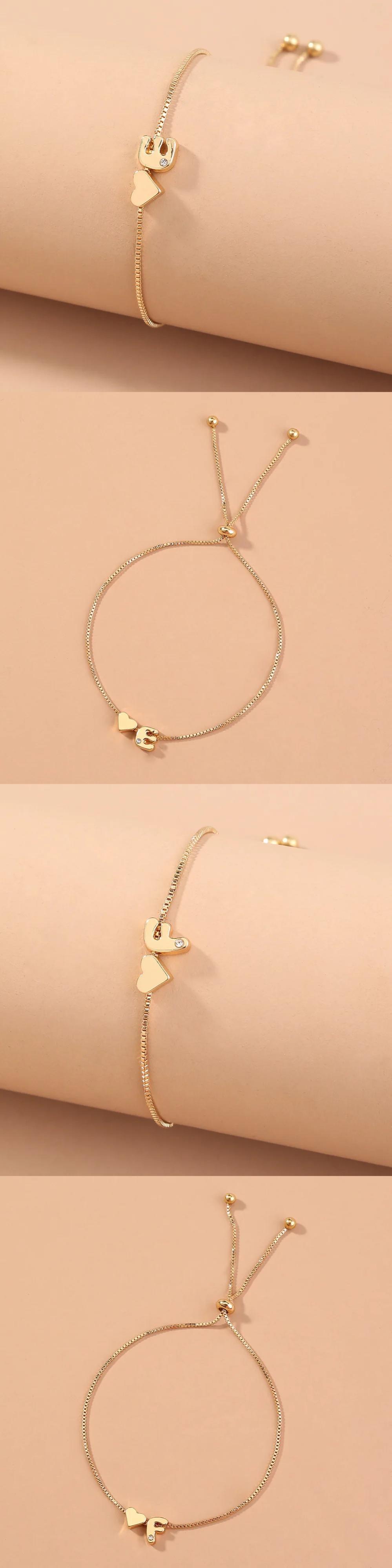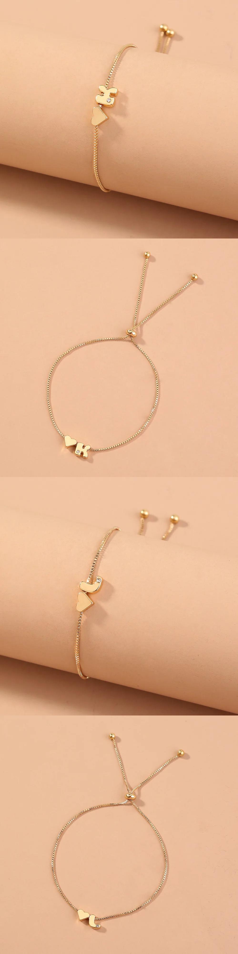 送料無料 ガールズゴールドカラー 26 A-Z 文字名ハートブレスレットバングルイニシャルアルファベットチャームボックスチェーンブレスレット女性ギフト AE778878898610281773