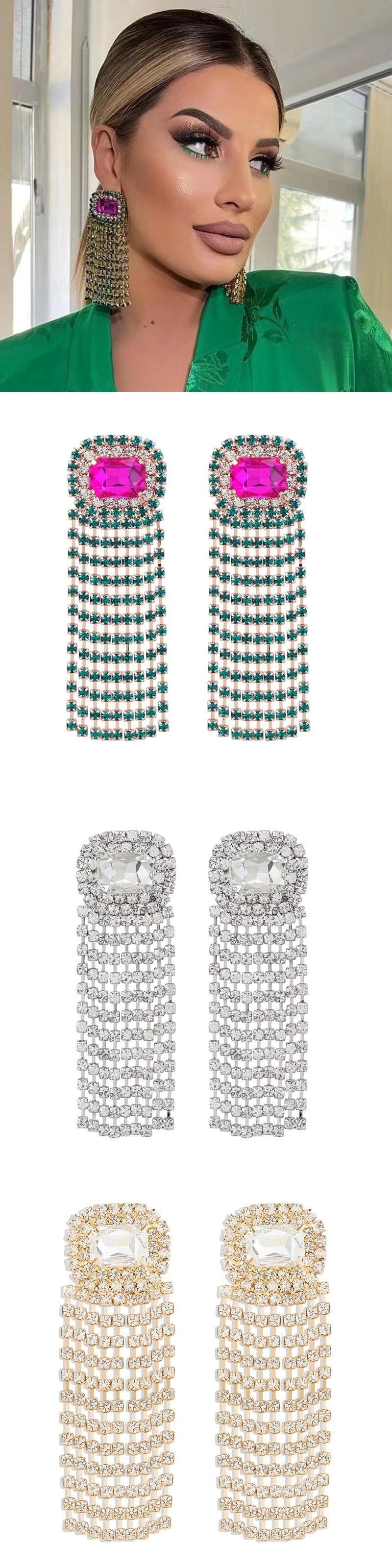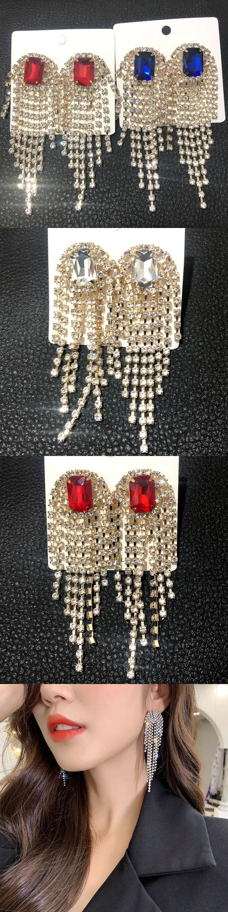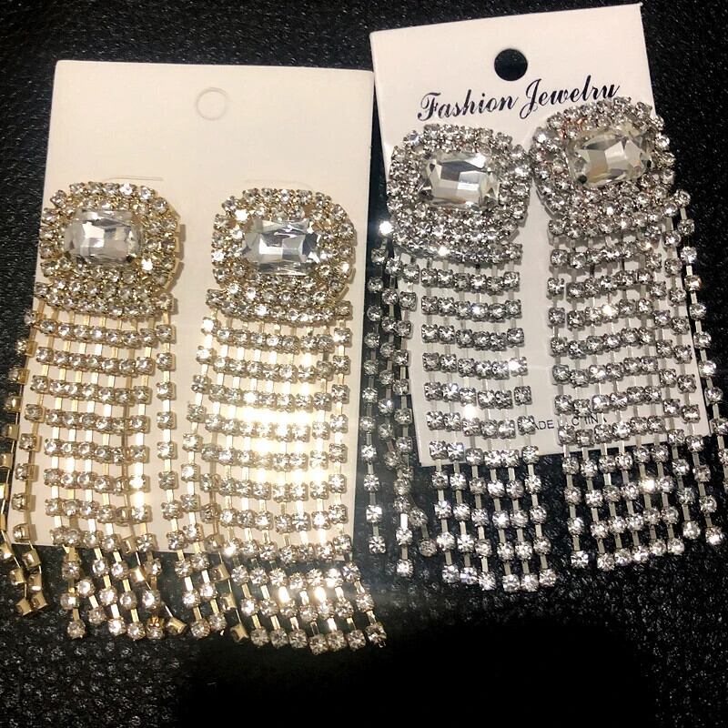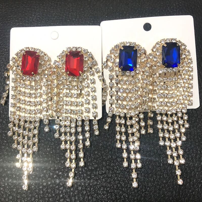 送料無料 誇張された女性フルラインストーンロング電話イヤリングカラフルな高級クリスタルブラブライヤリング Brincos ブライダルウェディングジュエリー 指輪 AE778878869290868608