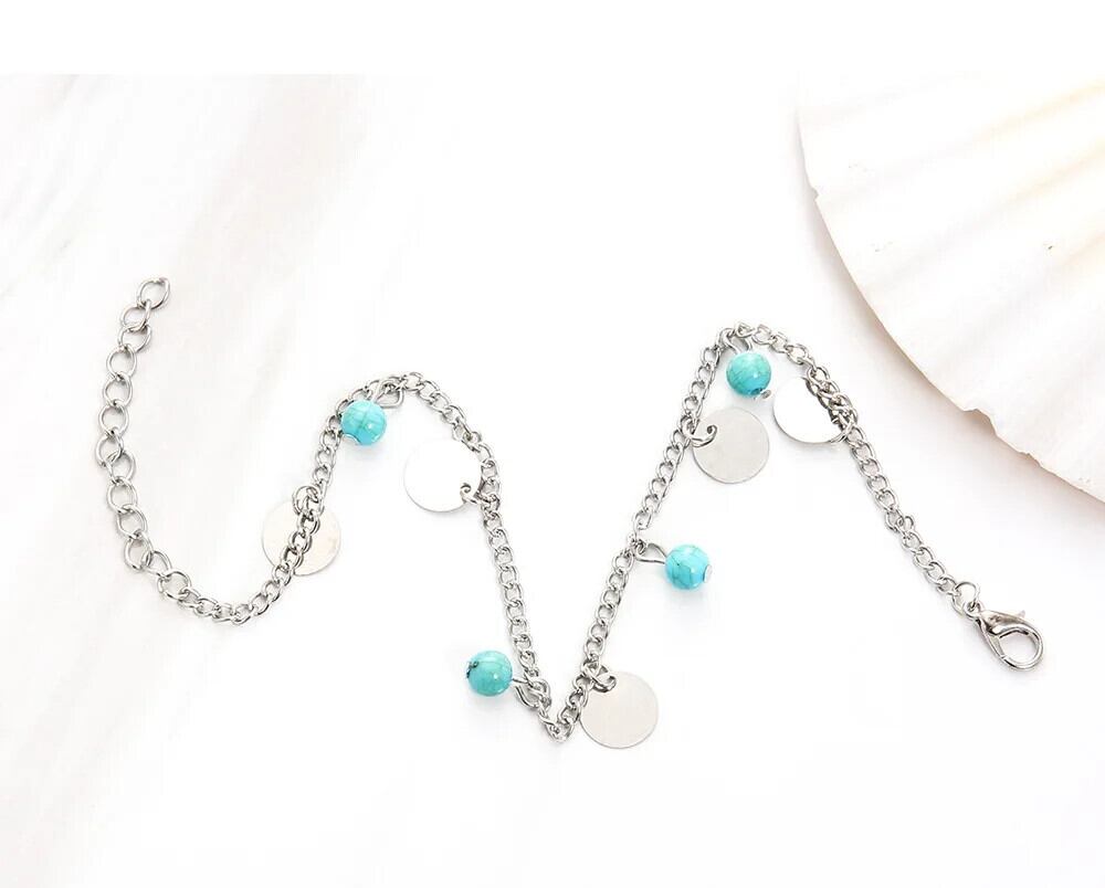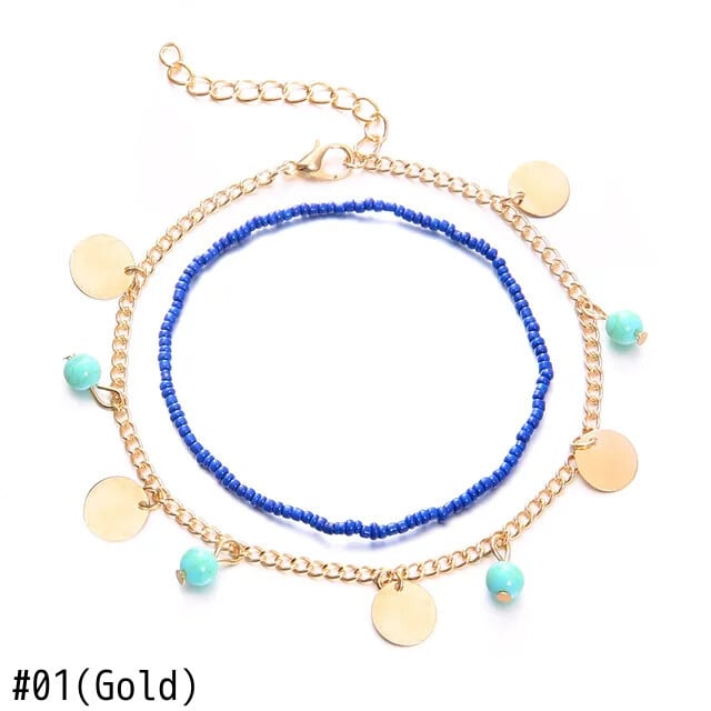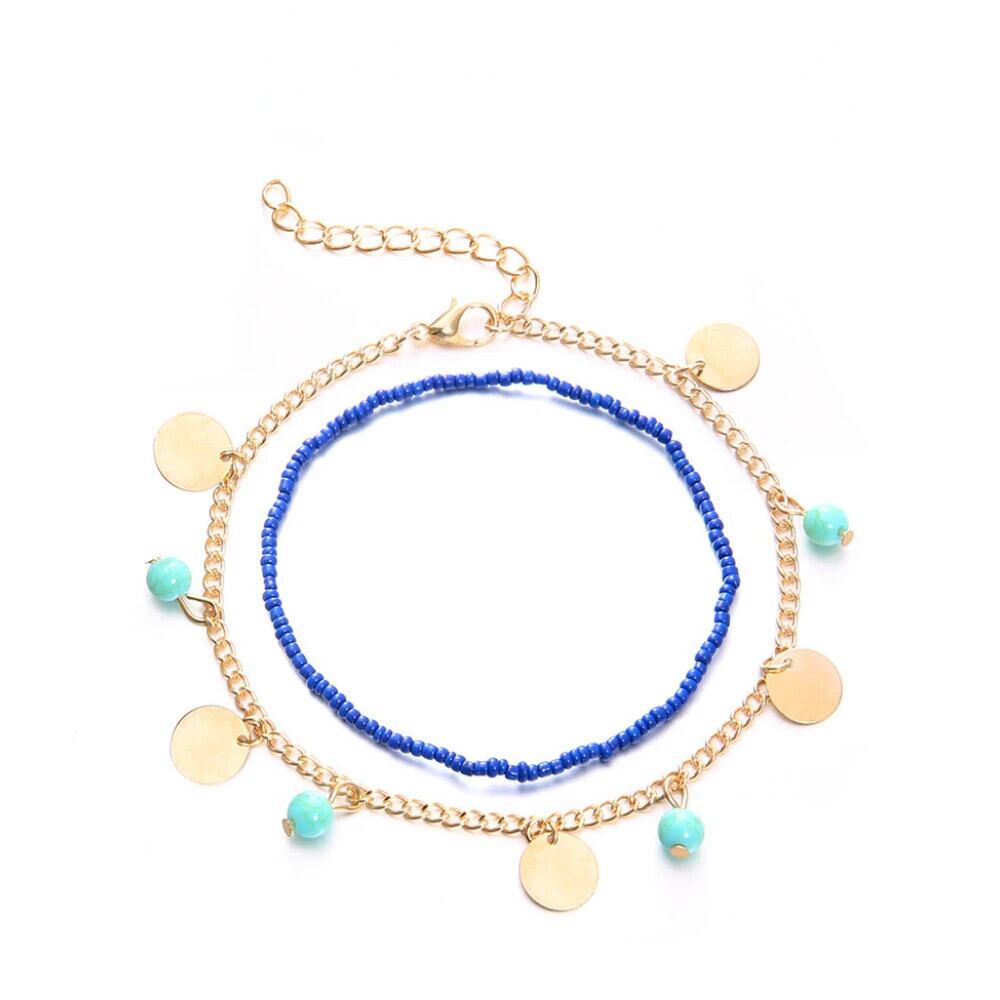 送料無料 ボヘミアンブルーターコイズビーズペンダントアンクレットブレスレット女性合金米ビーズアンクレットセット脚夏足チェーンビーチジュエリー サマー 夏物 AE778878814688818997