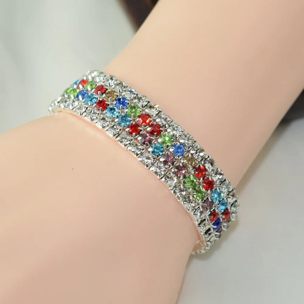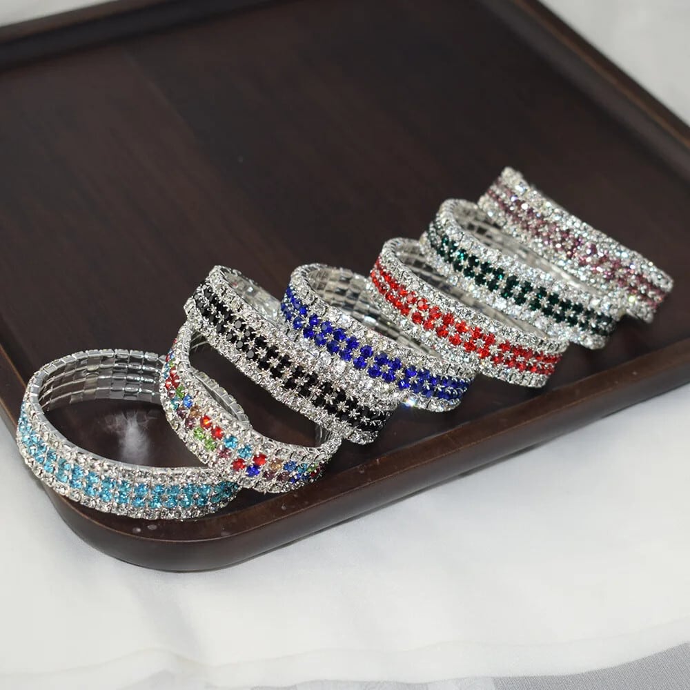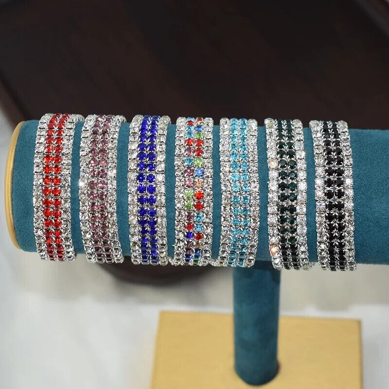 送料無料 ラインストーンテニスストレッチブレスレットスパークリングラウンドキュービックジルコニアブレスレット&バングル女性ブライダルウェディングジュエリー 風信子石 AE778878879443090442