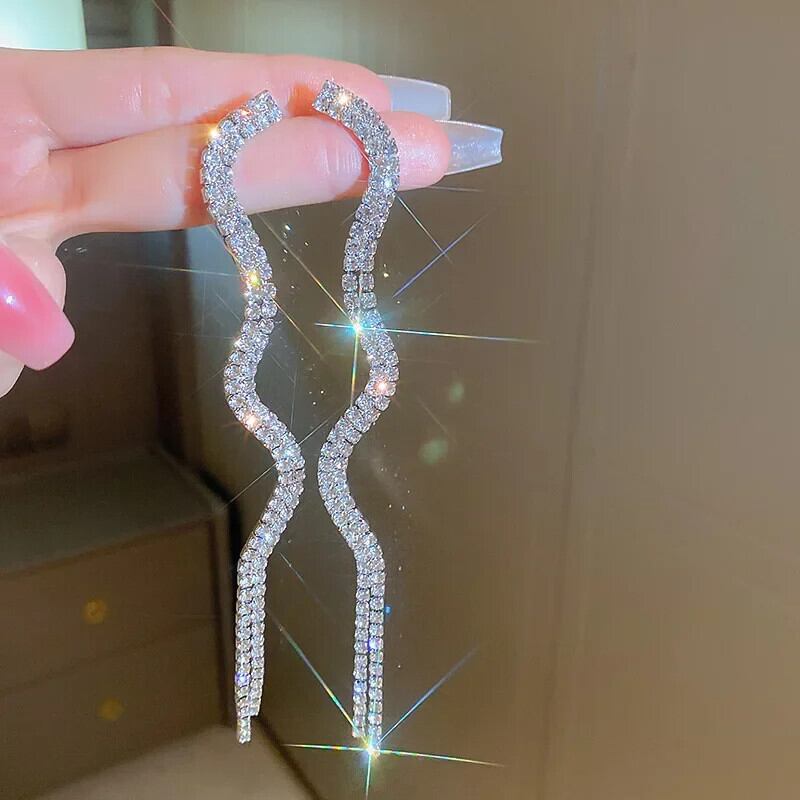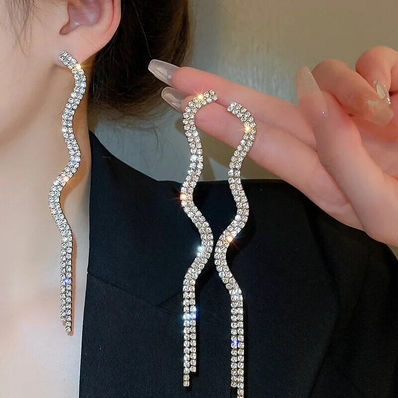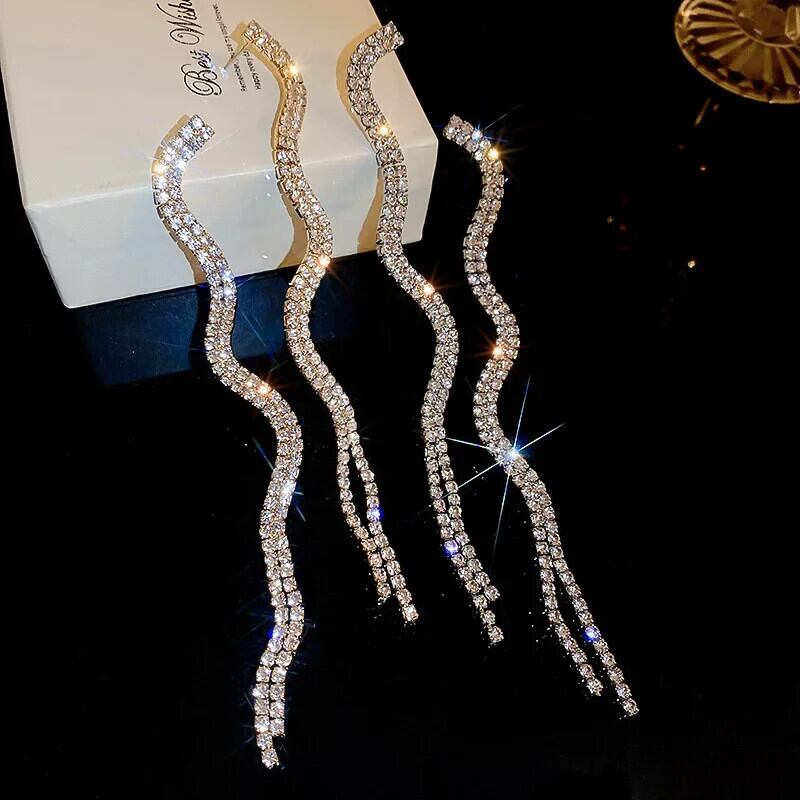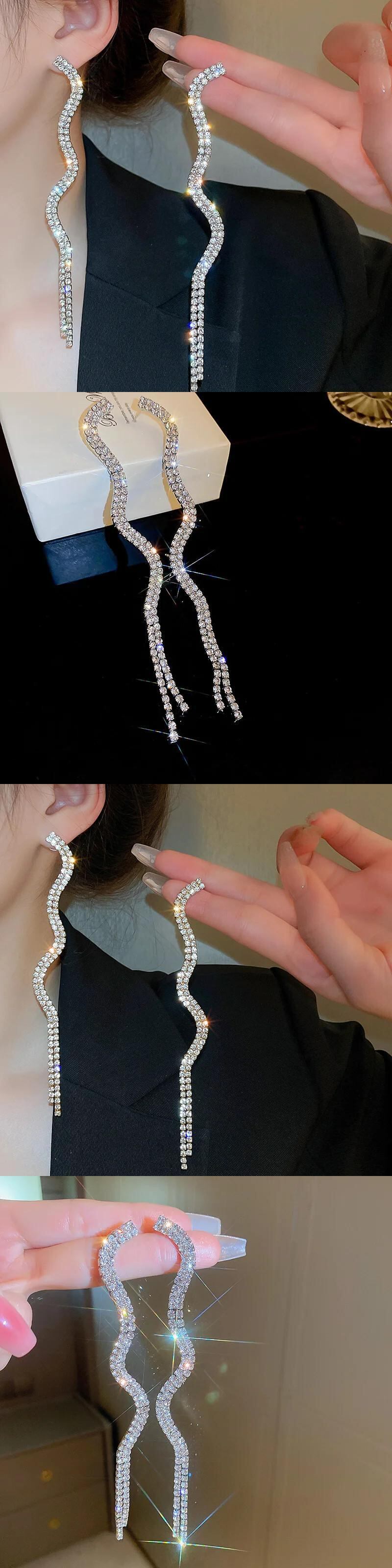 送料無料 Tel 高級ラインストーンロングイヤリングヘビ形のイヤリング女性の結婚式のブライダルジュエリー Серьги 指輪 AE778878868104725102
