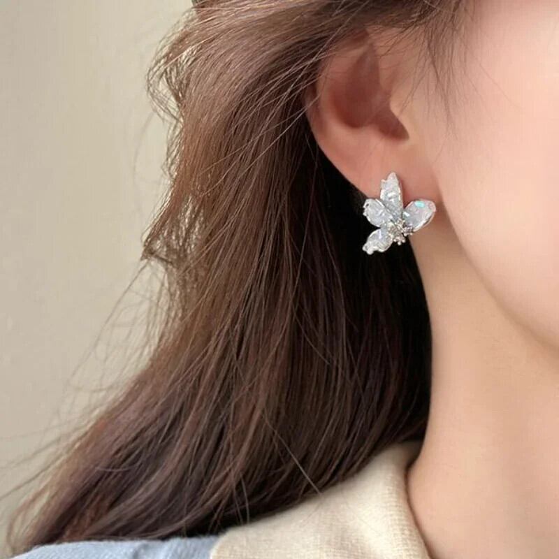 送料無料 ヴィンテージモランディブルーグラデーションクリスタル蝶のイヤリング女性チャームパーソナライズスタッドイヤリング誕生日ジュエリー 指輪 ビンテージ AE77887885372556885