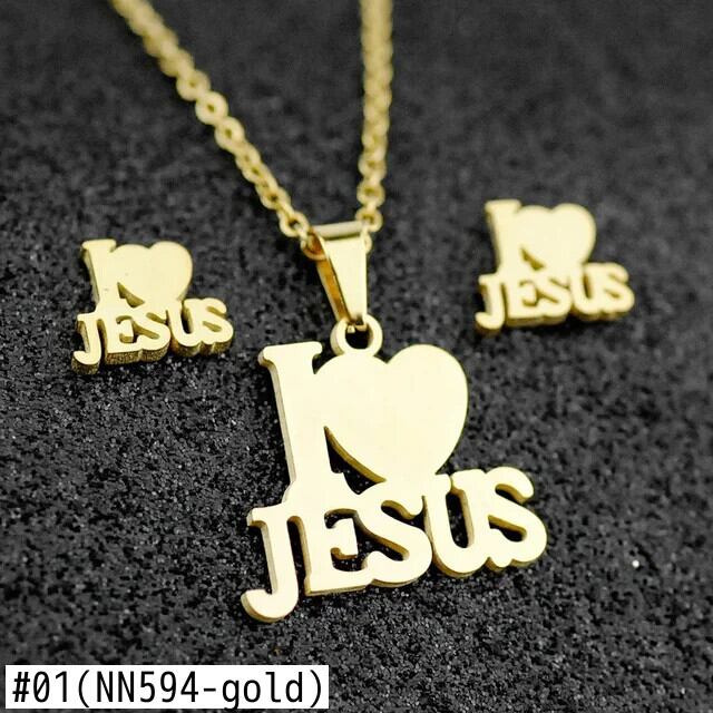 送料無料 ステンレス鋼イエスクロス男性チャームハートレターペンダントネックレスジュエリーセットチェーンキリスト教のシンボルジュエリーギフト レース AE778878856448277639