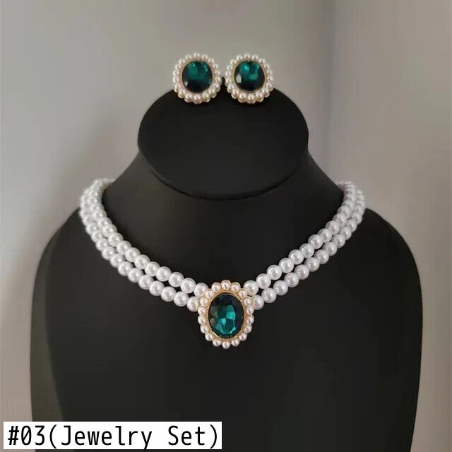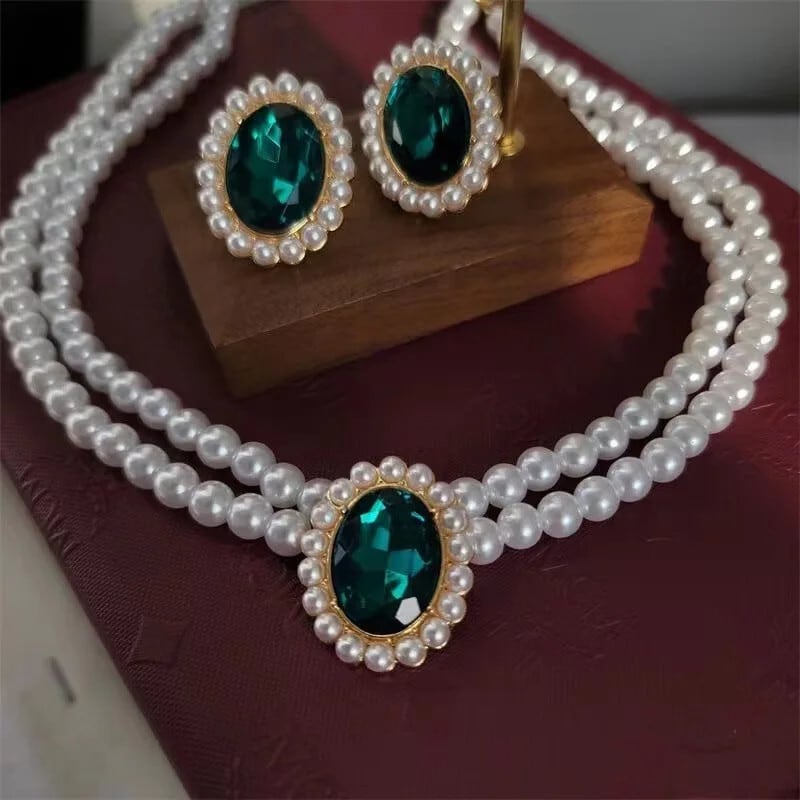 送料無料 ヴィンテージ二層エメラルドパールネックレスイヤリングセット女性グリーンクリスタルパールイヤリング鎖骨チョーカーネックレスアクセサリー レース 真珠 指輪 翠玉 緑玉 ビンテージ AE778878894124027326