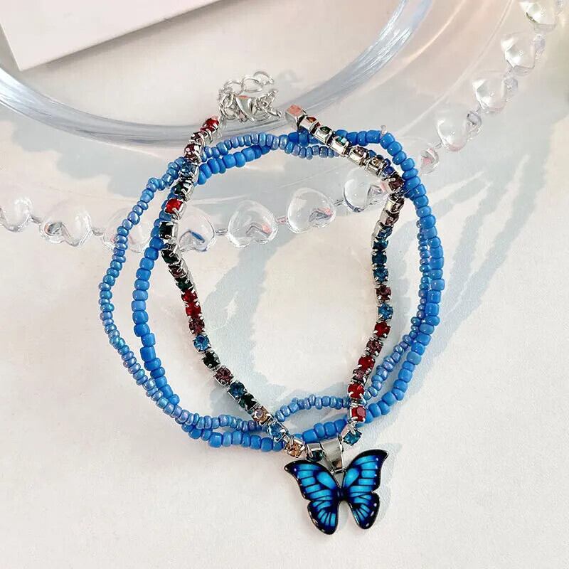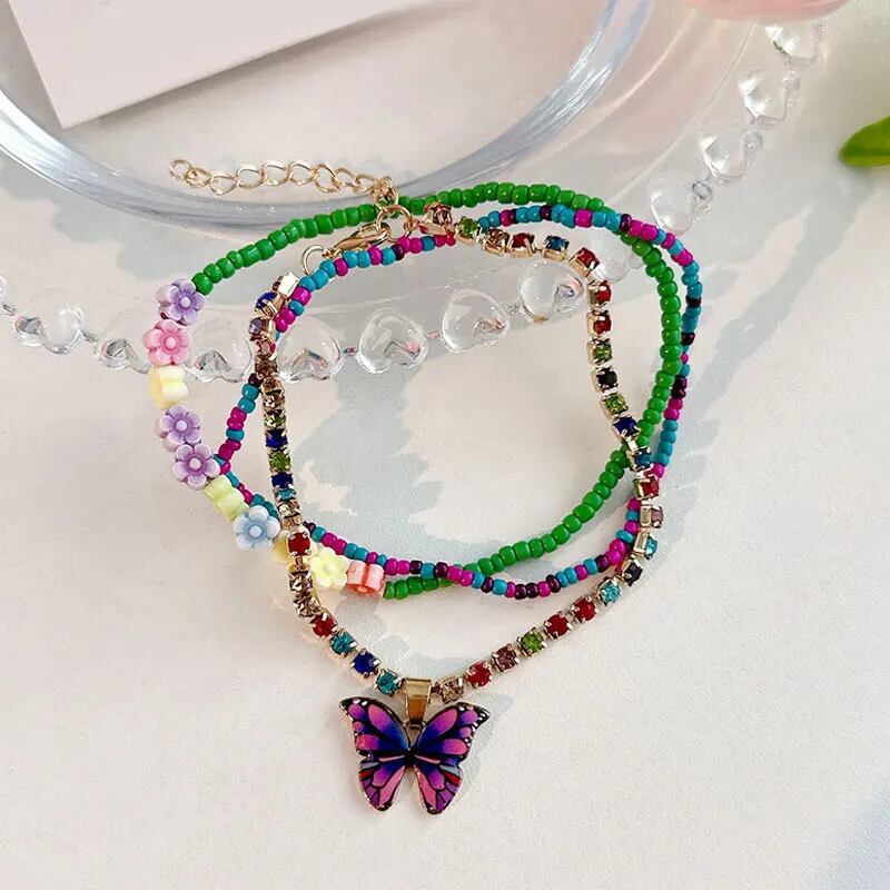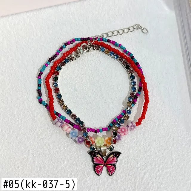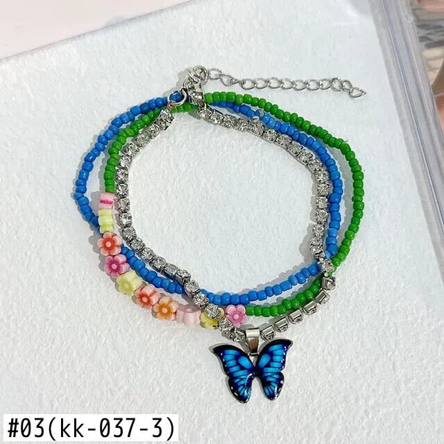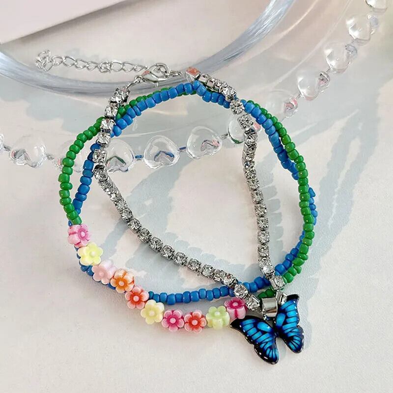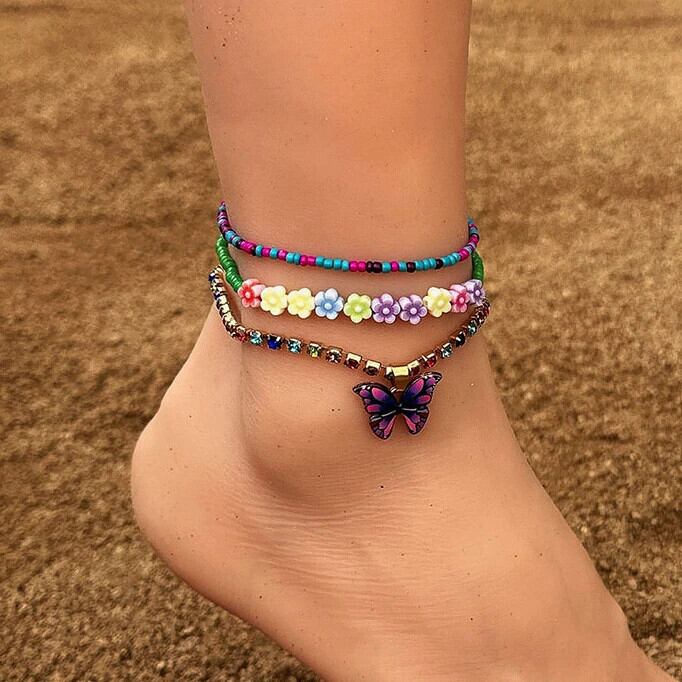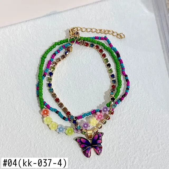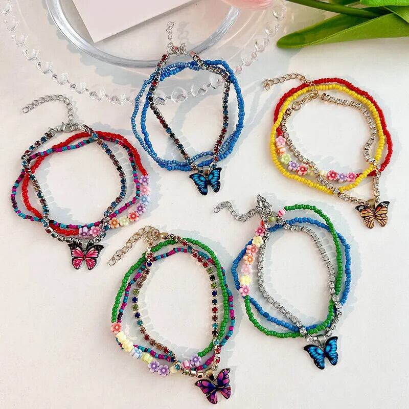送料無料 自由奔放に生きるライスビーズ花チャームアンクレットブレスレットセットカラフルな蝶ブリンブリンクリスタルテニスフットチェーン女性の夏のビーチジュエリー サマー 夏物 フラワーデザイン AE778878842774729270