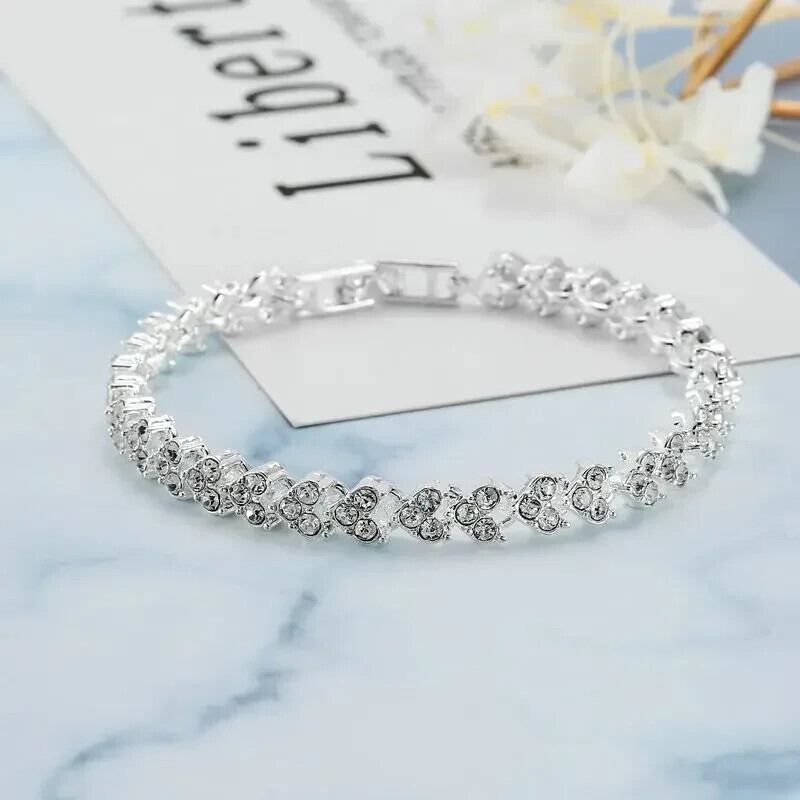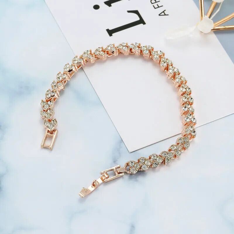送料無料 高級ローマクリスタルブレスレット女性ハートチェーンブレスレットラインストーンバングルブライダルジュエリーアクセサリー送料無料 AE778878898109214247