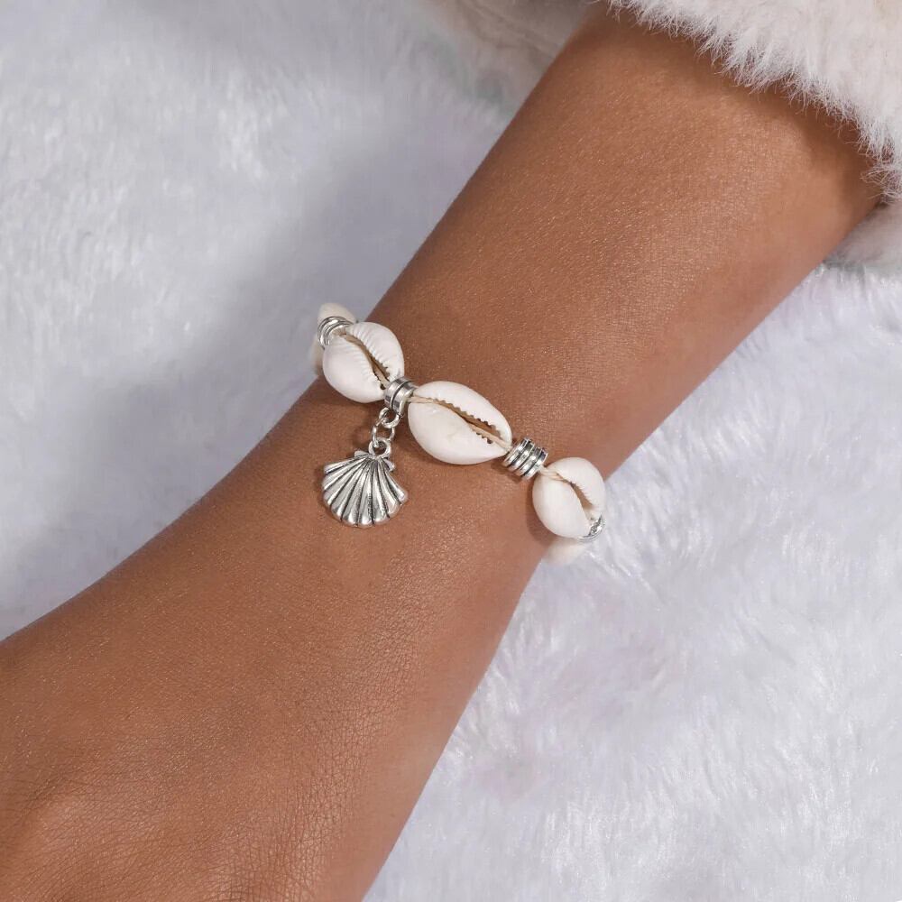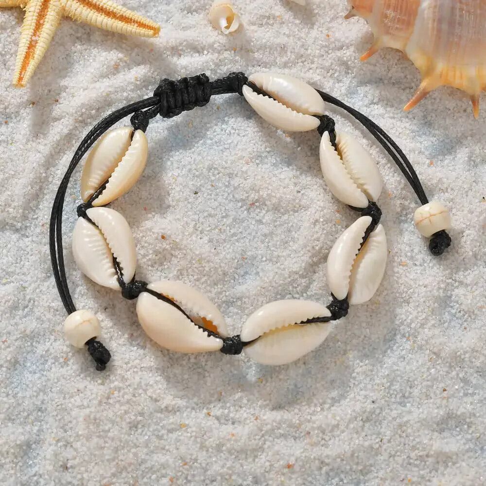 送料無料 シェル織りブレスレットユニセックス調節可能なワックスロープイミテーションパールビーズブレスレット女性ボヘミアンビーチジュエリー Браслет アジャスタブル 真珠 AE778878899951341751