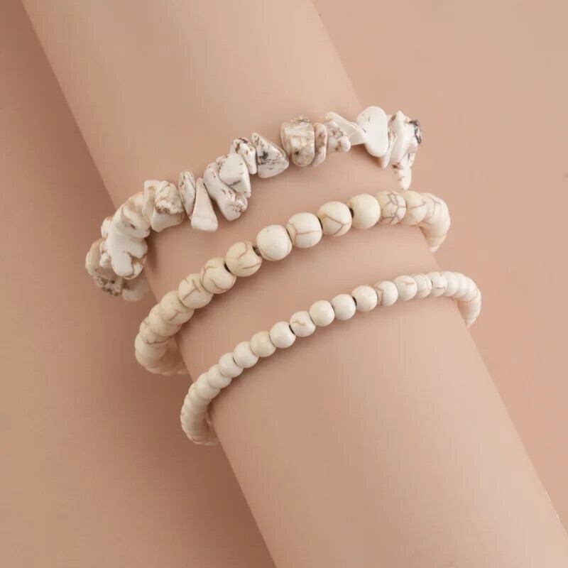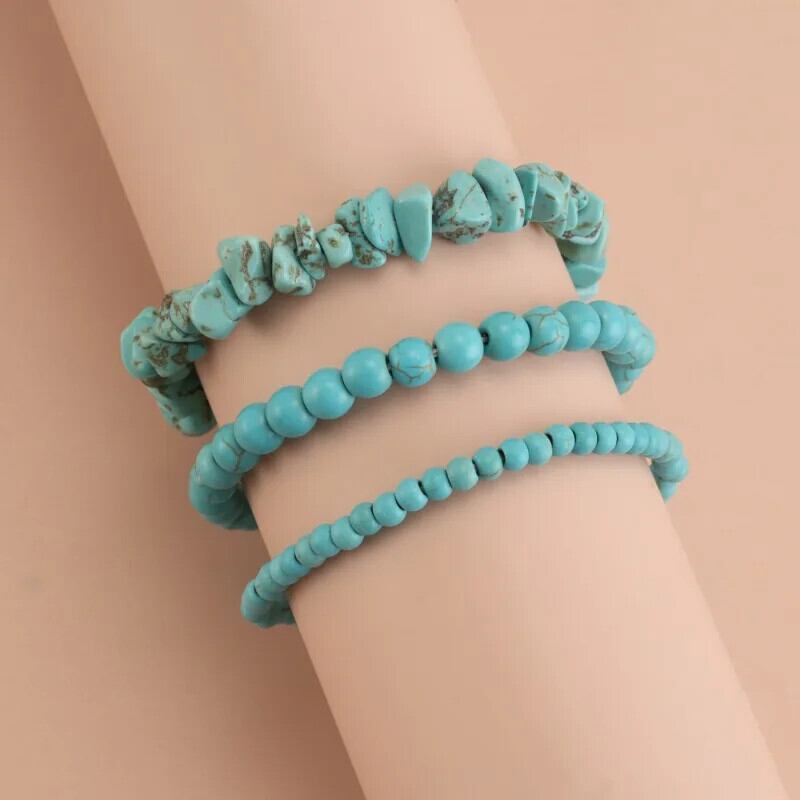 送料無料 ボヘミア手作りブレスレットセット 3 ピース/セットターコイズビーズストランドブレスレット幾何学的な弾性バングル女性友情ジュエリー エラスティック 伸縮 AE778878885545831236