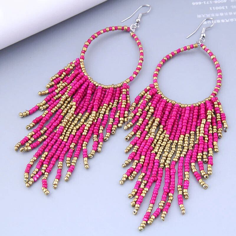 送料無料 自由奔放に生きる手作りビーズブラブライヤリングロング電話ペンダントイヤリング女性パーティービーチエスニックジュエリーアクセサリーギフト 指輪 AE778878855332197014